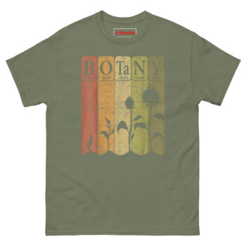 That moment inspired this Botany Periodic Table T Shirt design. We wanted to honor both sides of plant science, the visible beauty and the invisible structure. The periodic table squares at the top represent the fundamental building blocks of life. Below them, the sunflower’s life cycle tells the visual story: seed to seedling to full bloom. Together, they create a complete picture. The retro vertical stripes in warm earth tones ground everything in that 1970s environmental movement aesthetic, when people first started really paying attention to how nature and science intersect. Whether you’re a Horticulture student graduation gift recipient or a seasoned botany professor, this shirt acknowledges that you understand both the art and the equation.