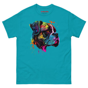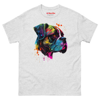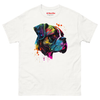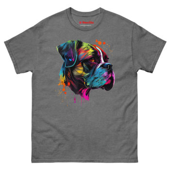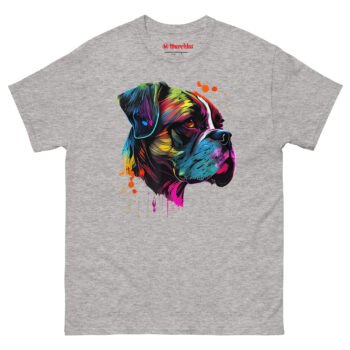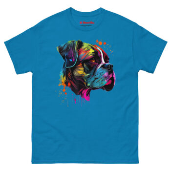 Meet the Boxer Artwork T Shirt, a piece of wearable art that captures the high-energy soul of your favorite breed. Unlike a standard pet photo on a shirt, this design uses a neon “Technicolor Pop Art” style to reflect a Boxer’s playful and protective personality. It is the perfect statement piece for dog owners who love bold, modern art and want to wear their pride for their canine companion everywhere they go.