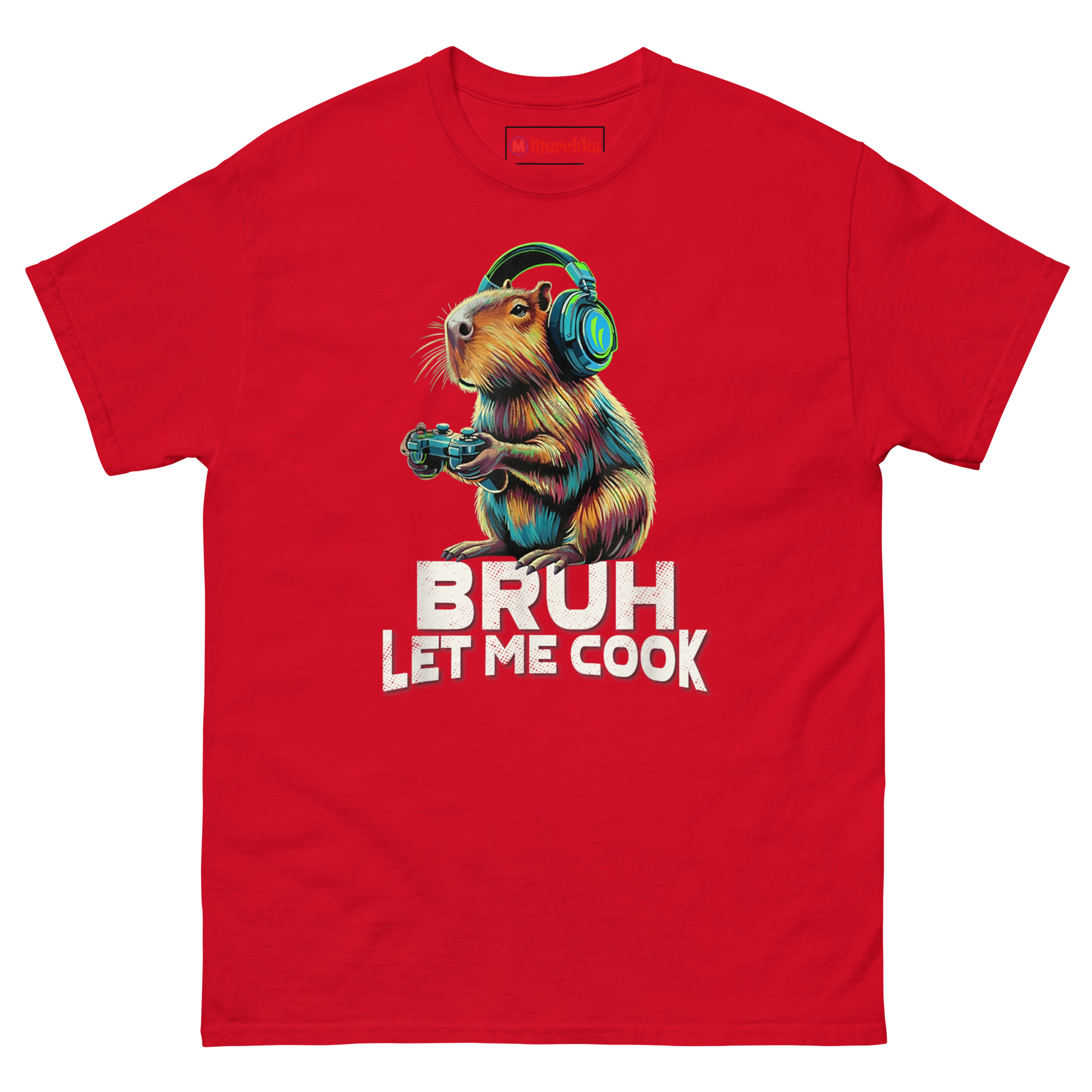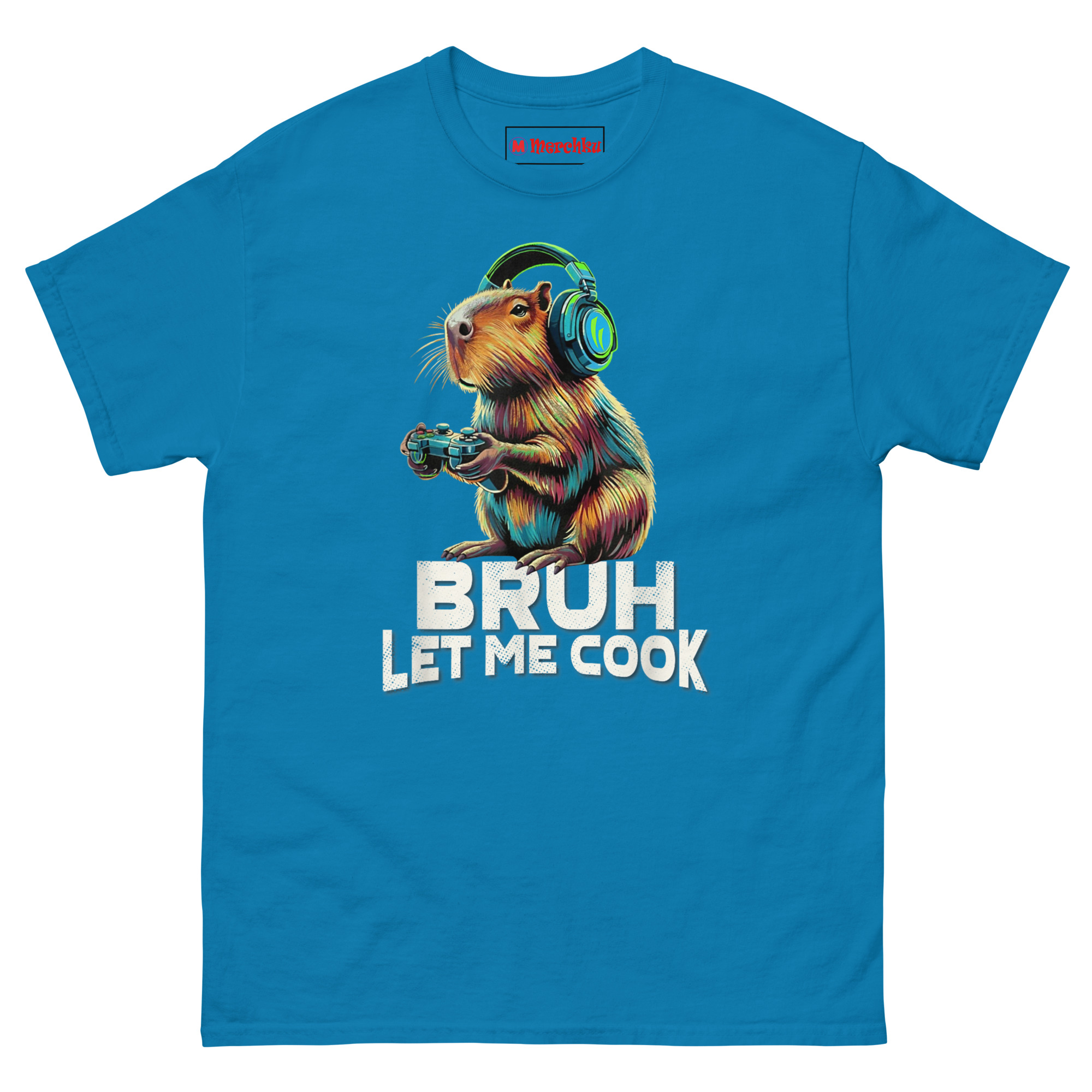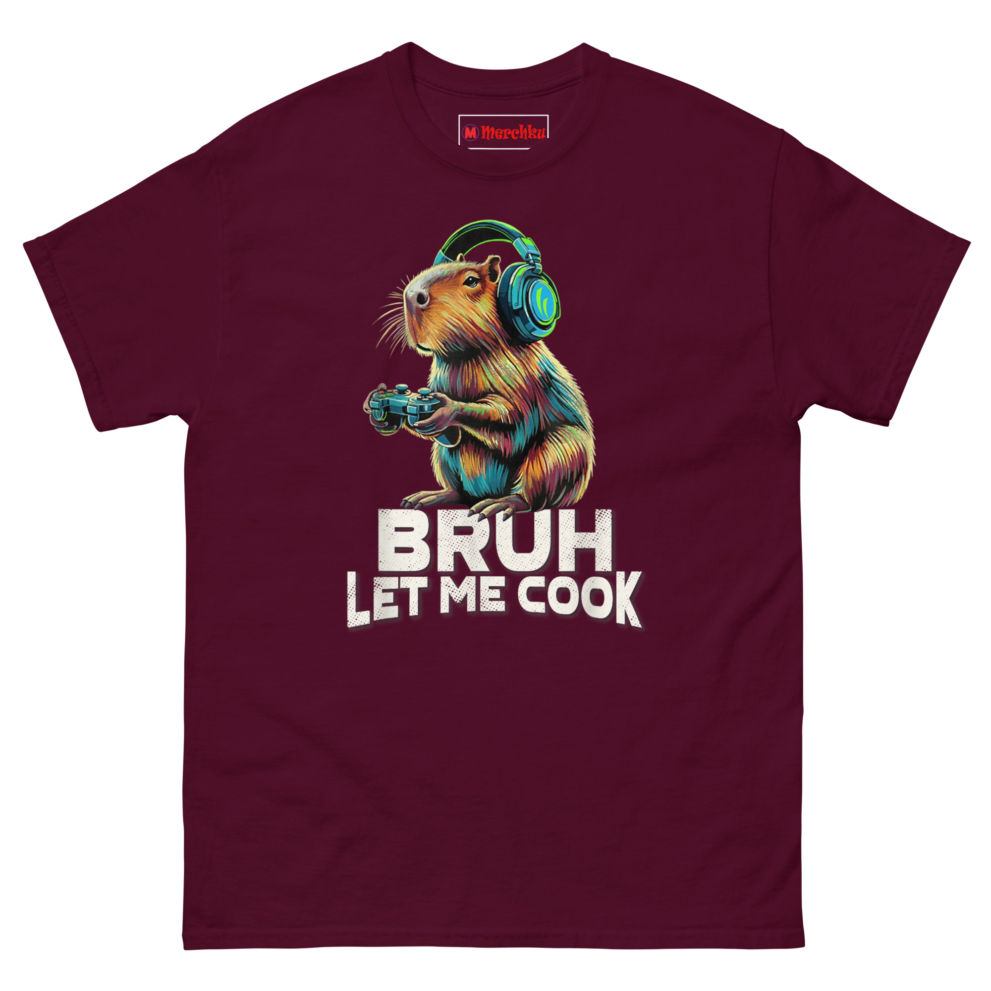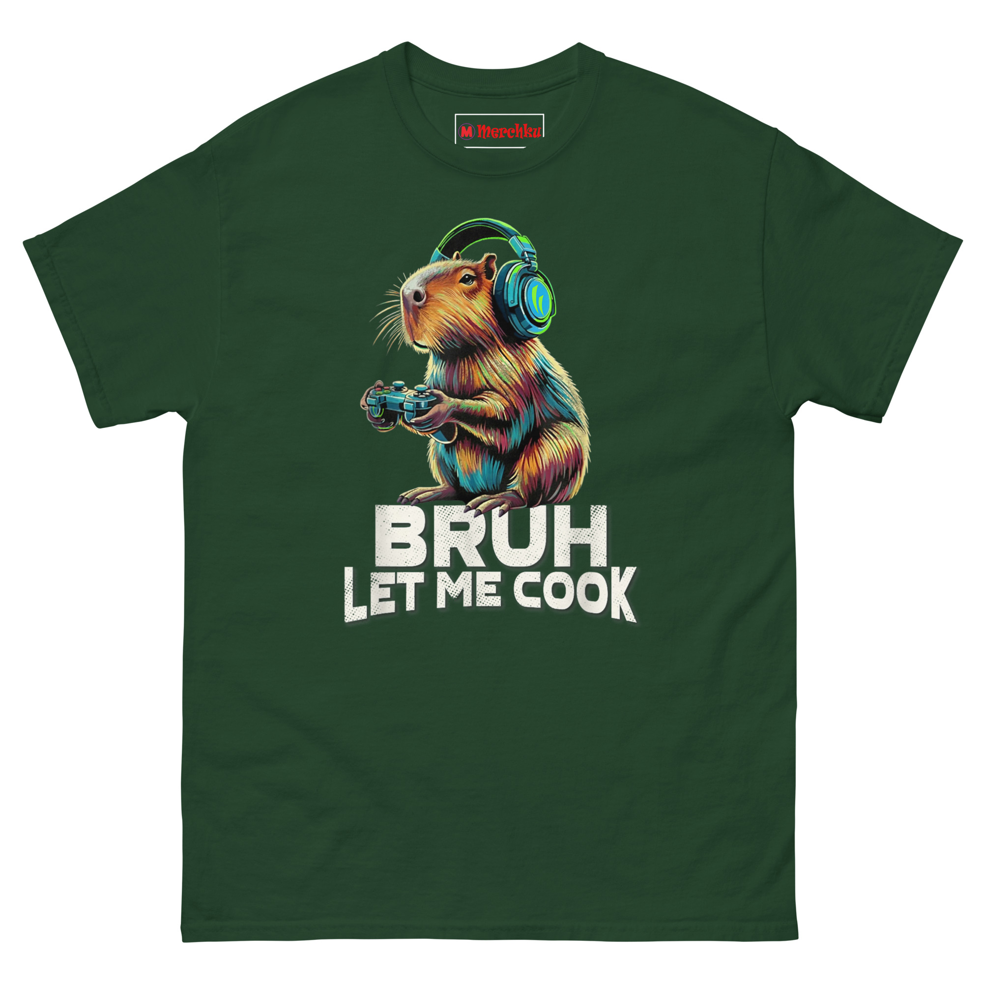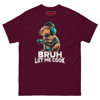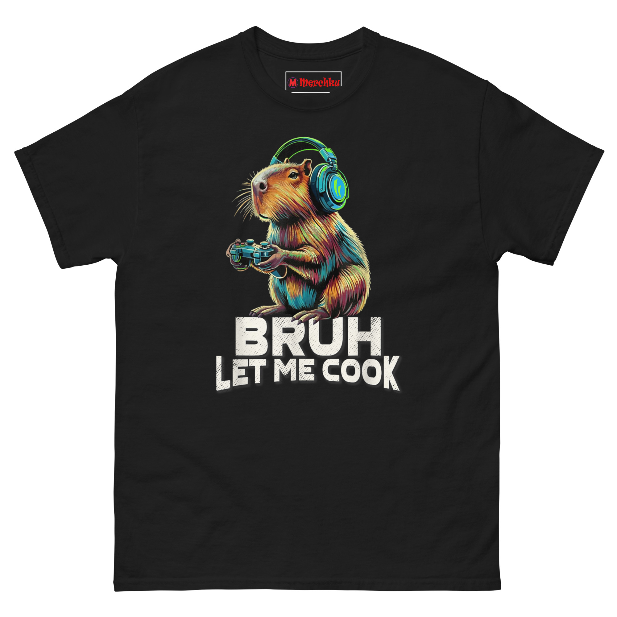 - Internet Culture Meets Art: Bruh Let Me Cook T Shirt speaks the language of social media trends without screaming. The capybara holding game controller graphic tee design is a nod to those who understand that winning is about mindset, not just mechanics.