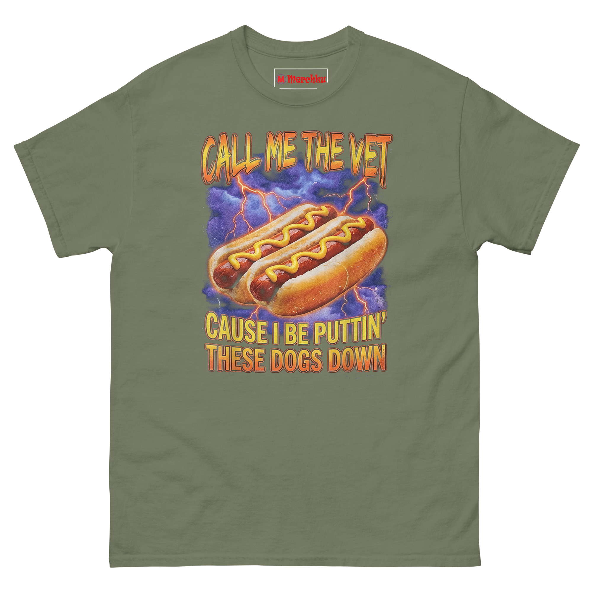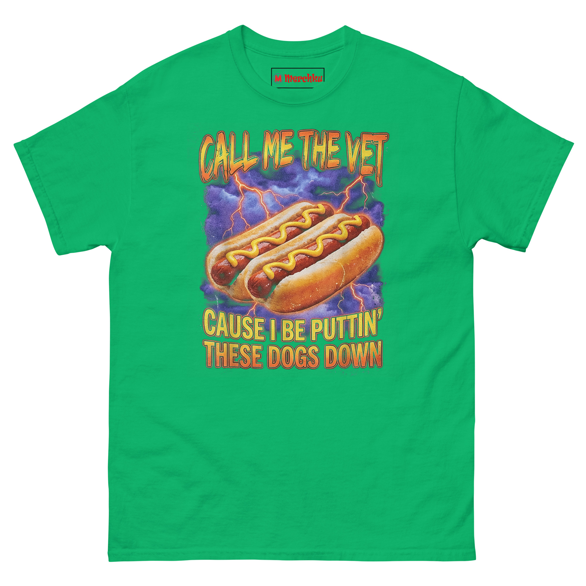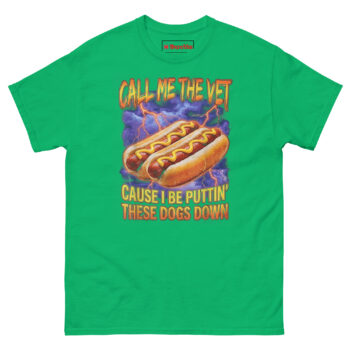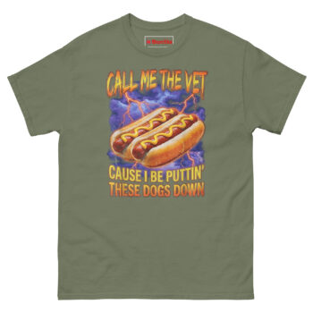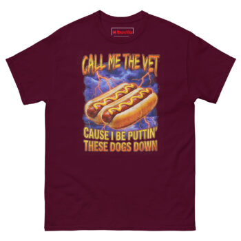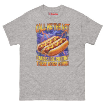 We didn’t just slap a pun on a shirt. The Call Me The Vet Hot Dog T Shirt idea came from talking to actual vet techs who admitted that sarcasm is their primary coping mechanism. One night, over a plate of late-night “glizzies,” someone joked, “I don’t put dogs down… unless they’re covered in mustard.” That dark wordplay sparked this design.
