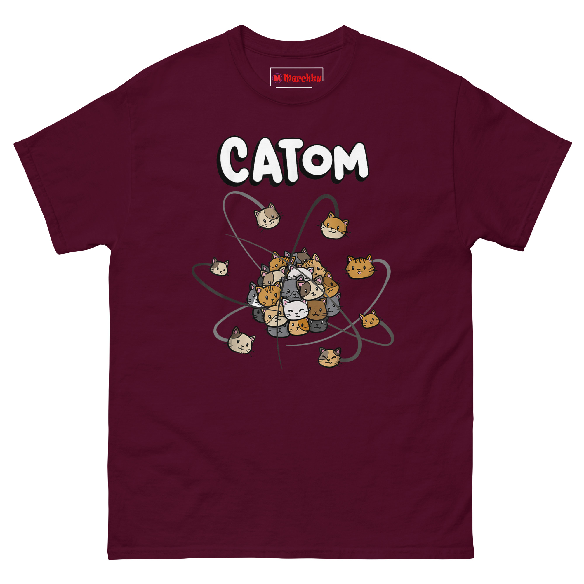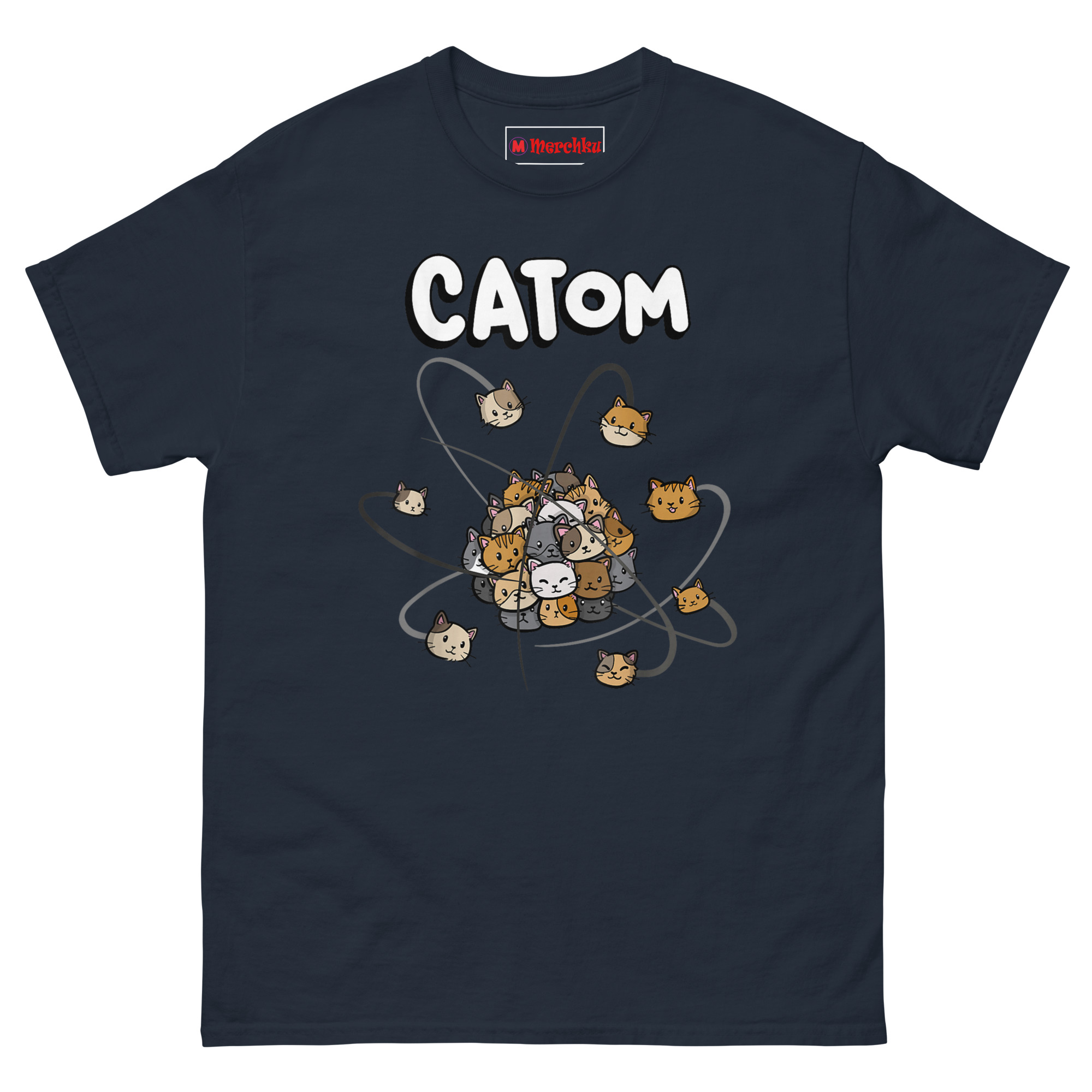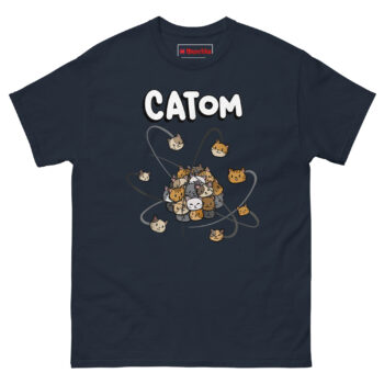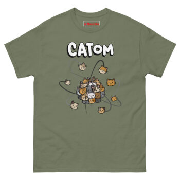 The idea for Catom Cat T Shirt came from a real high school physics classroom. The teacher kept trying to explain electron orbitals, but two things kept stealing the show: a stray tabby outside the window and the students’ obsession with cat videos. That’s when the “Catom” concept was born.