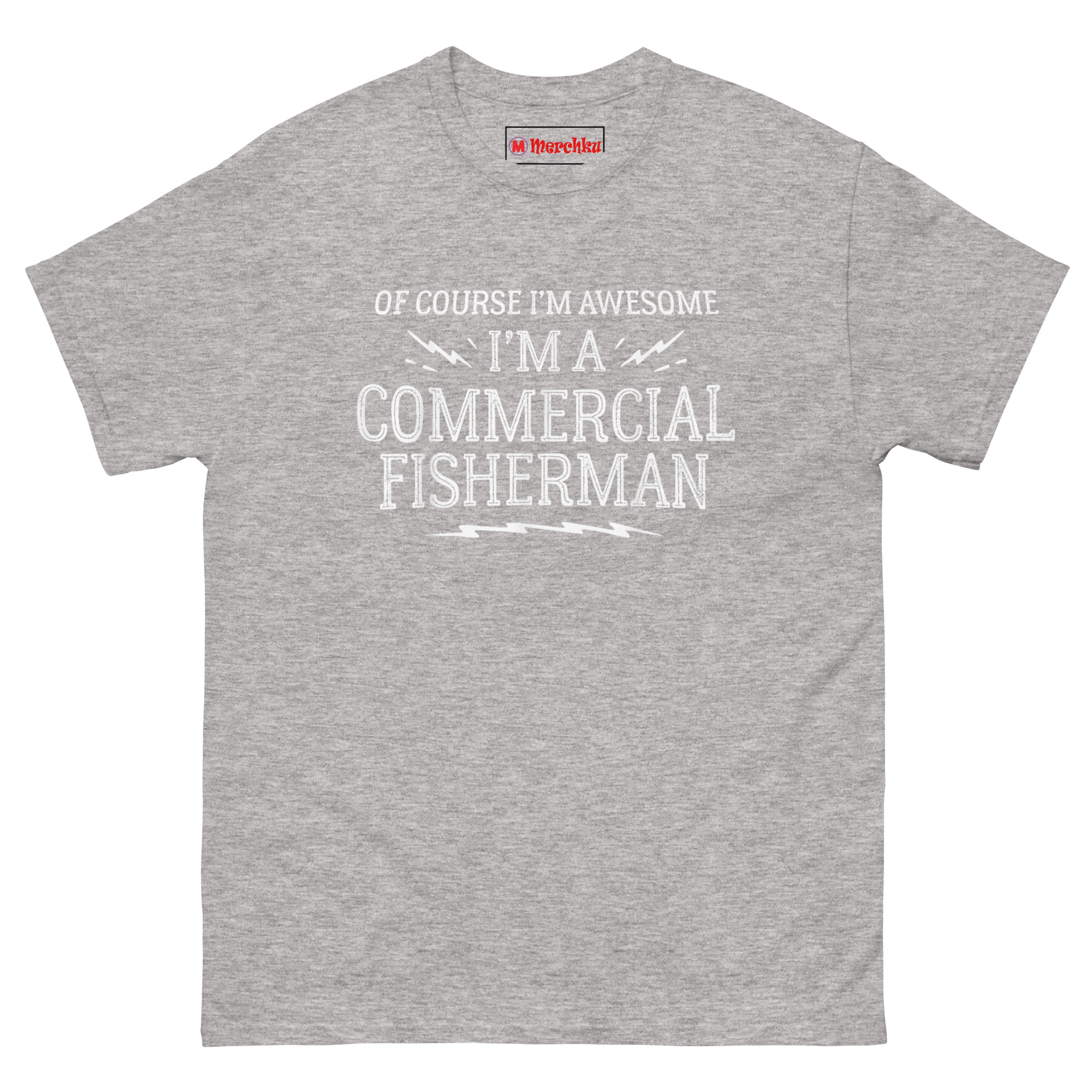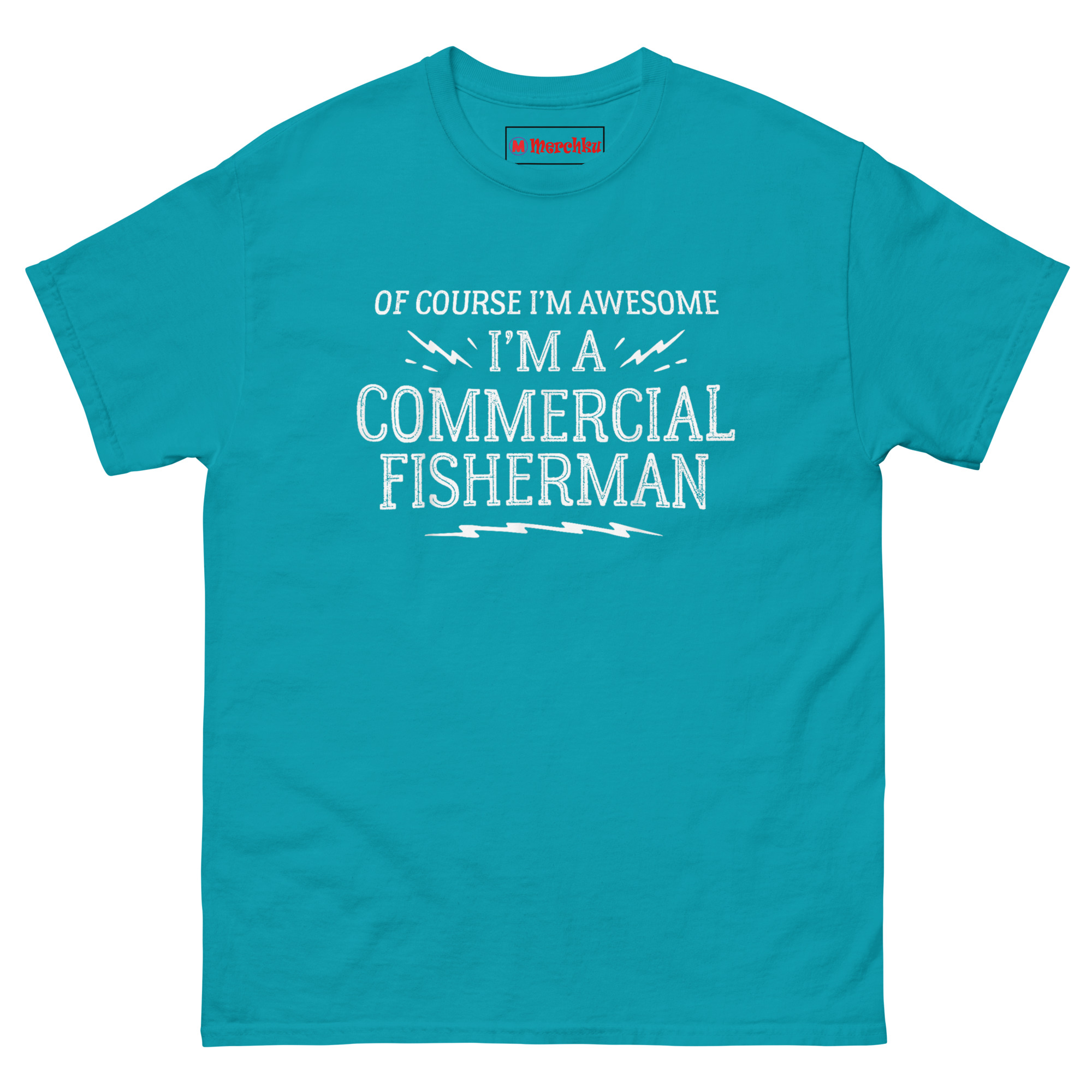This is the Commercial Fisherman T Shirt, a bold statement piece for the men who earn their living on the water. What makes it unique is the confident declaration paired with lightning bolt accents, capturing the pride and intensity of one of the world’s toughest professions. It is designed for deckhands, captains, and anyone who has ever hauled nets in rough seas, making it one of the most unique cool gifts for the fisherman in your life, all printed on a comfortable 100% Cotton Tee.