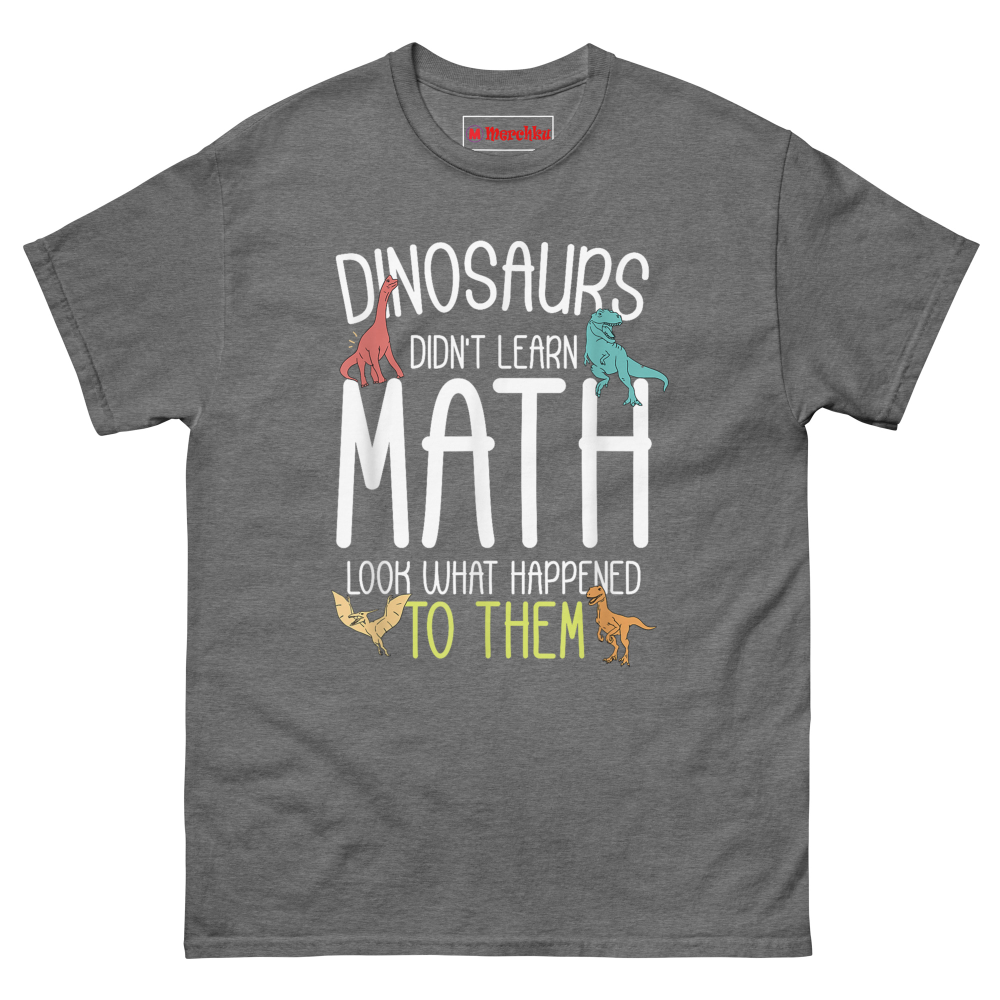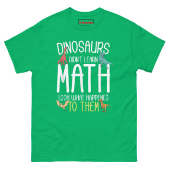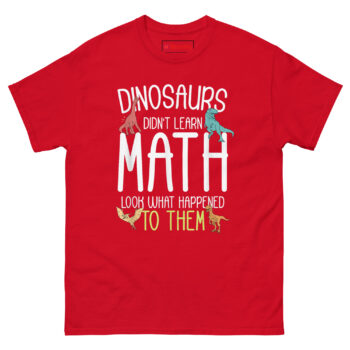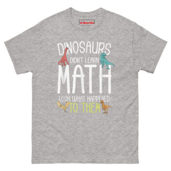 This Dinosaurs Didn’t Learn Math T Shirt started as a joke between two middle school math teachers trying to motivate a class that groaned every time fractions appeared on the board. One of them looked at a dinosaur poster on the wall and said, “Well, dinosaurs didn’t learn math. Look what happened to them.” The students laughed, and the joke stuck.