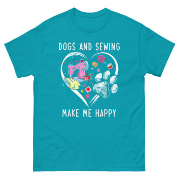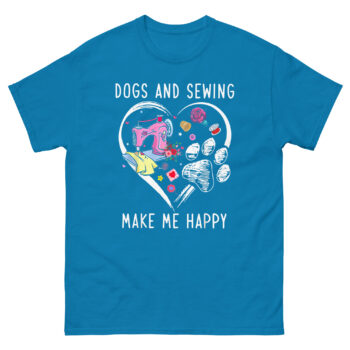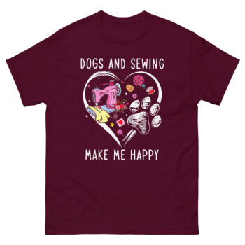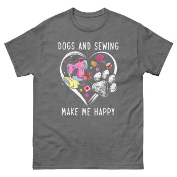 We designed Dogs and Sewing Make Me Happy T Shirt for the person who understands that some of life’s best moments are quiet ones. The rhythmic hum of a sewing machine. The soft thump of a dog’s tail on the floor. Fabric sliding through your fingers while a warm muzzle rests on your lap. These aren’t just hobbies. They’re a sanctuary.