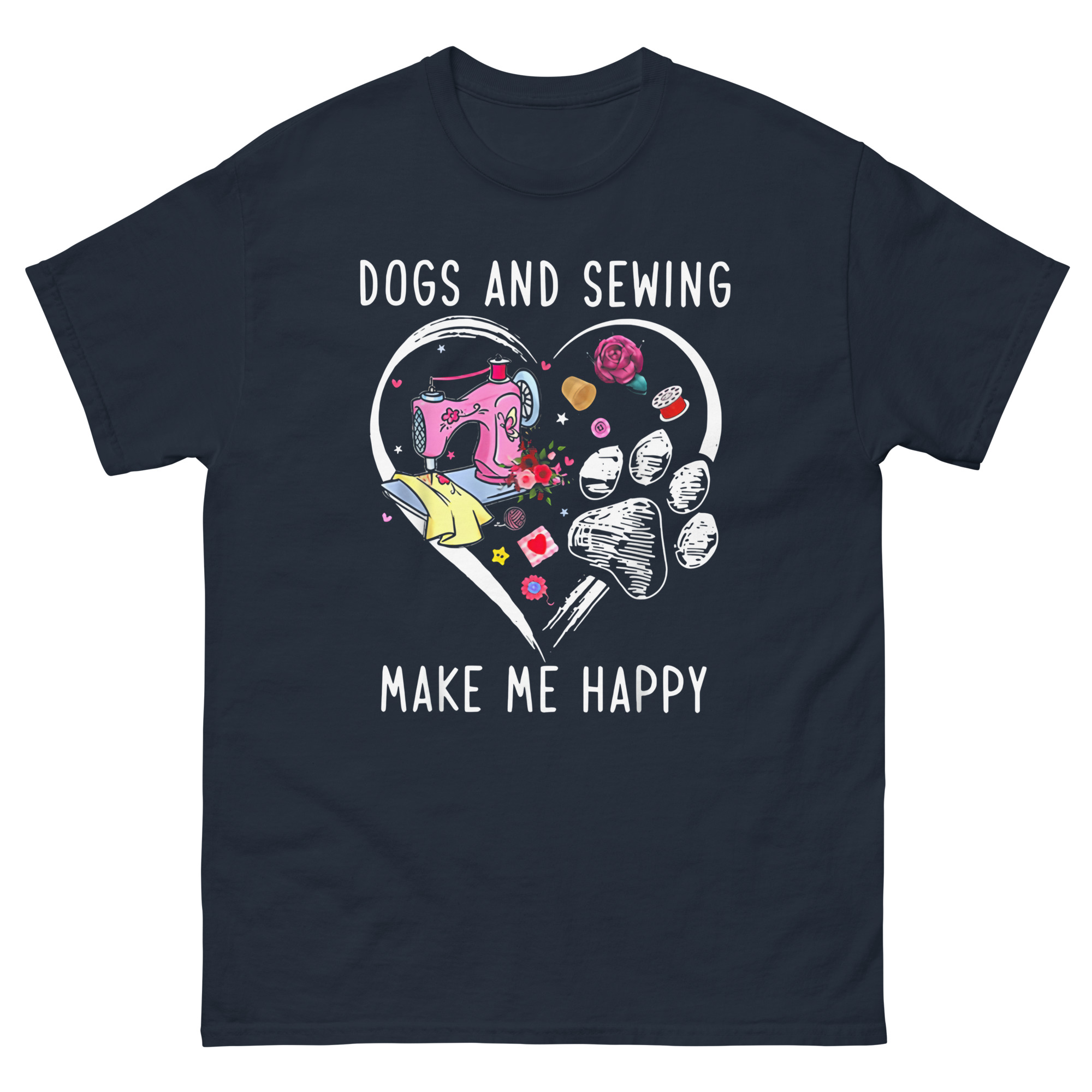 Dogs and Sewing Make Me Happy T Shirt Specifications