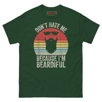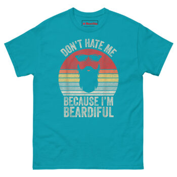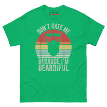 We chose “Don’t hate me because I’m beardiful” because it flips the original line from vanity to confident humor. A bearded guy can wear this to a barbecue, a brewery, or just the couch. It says “I groom this thing” without being arrogant.