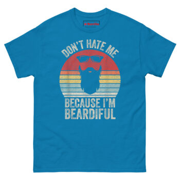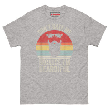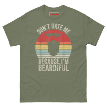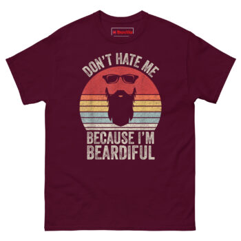 Looking for a funny anniversary gift for bearded husbands that doesn’t feel like a last-minute drugstore grab? The Don’t Hate Me Because I’m Beardiful T Shirt delivers. It’s also one of the best unique birthday presents for beard enthusiasts who already own every balm, oil, and comb on the market. For sarcastic beard pun shirts for guys, this one tops the list because it mixes humor with real retro style. Pick a size, add to cart, and let him wear the punchline.