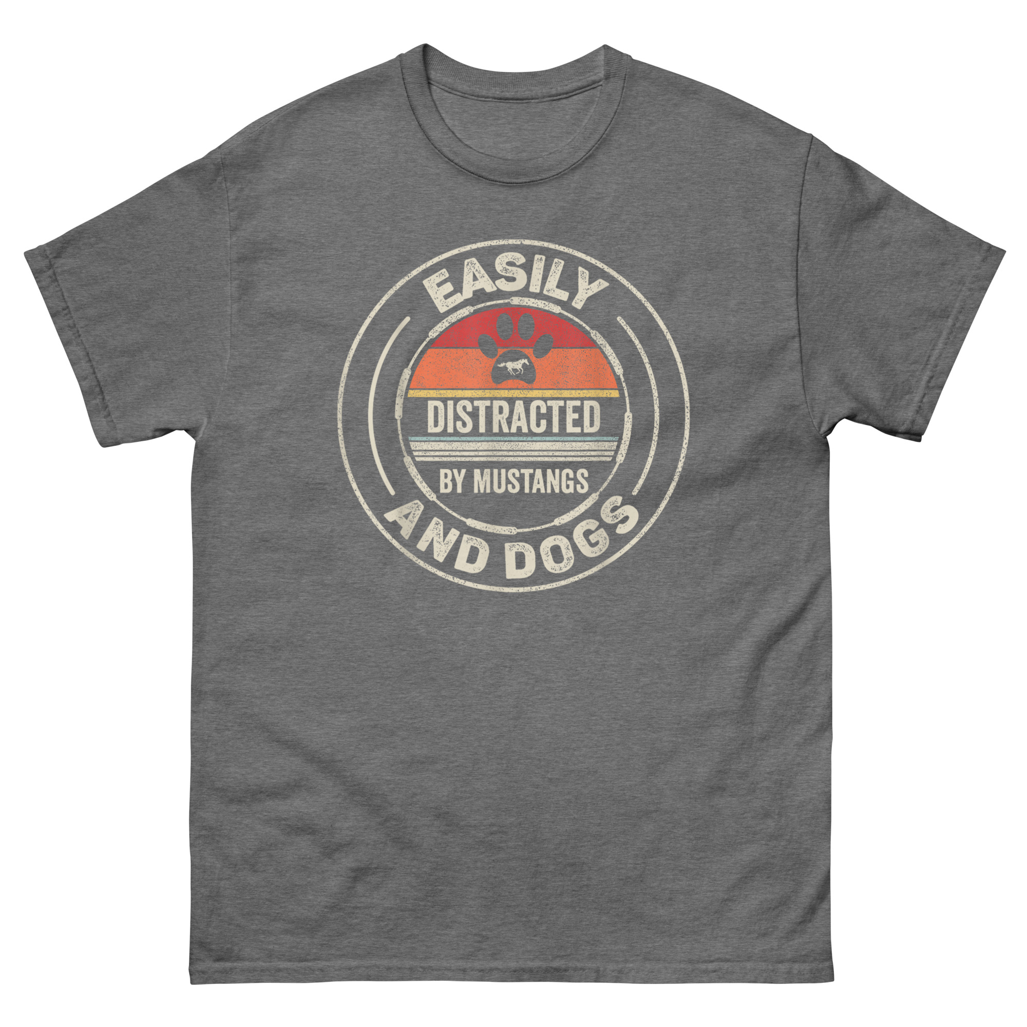 - Material: Easily Distracted by Mustangs and Dogs T Shirt 100% Breathable Cotton, chosen for its softness and natural breathability.