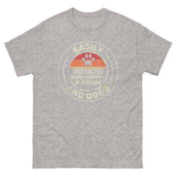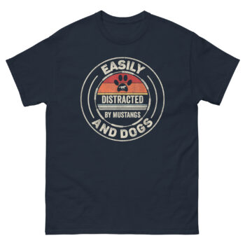 - It Represents Your Two Loves Perfectly: Easily Distracted by Mustangs and Dogs T Shirt doesn’t make you choose. The clever design merges your passions into one cohesive, stylish graphic. It’s the ultimate Mustang and Dog lover fashion statement.