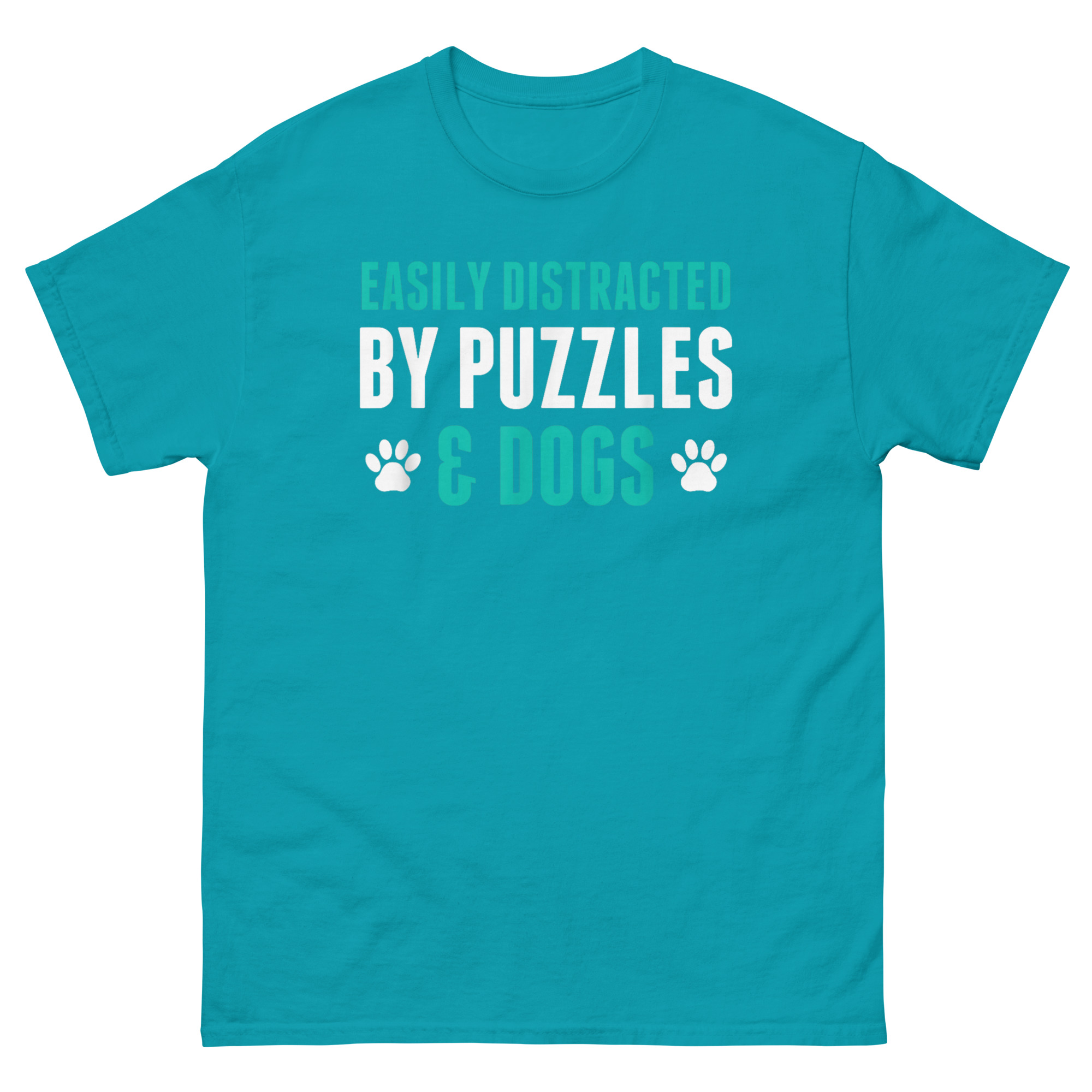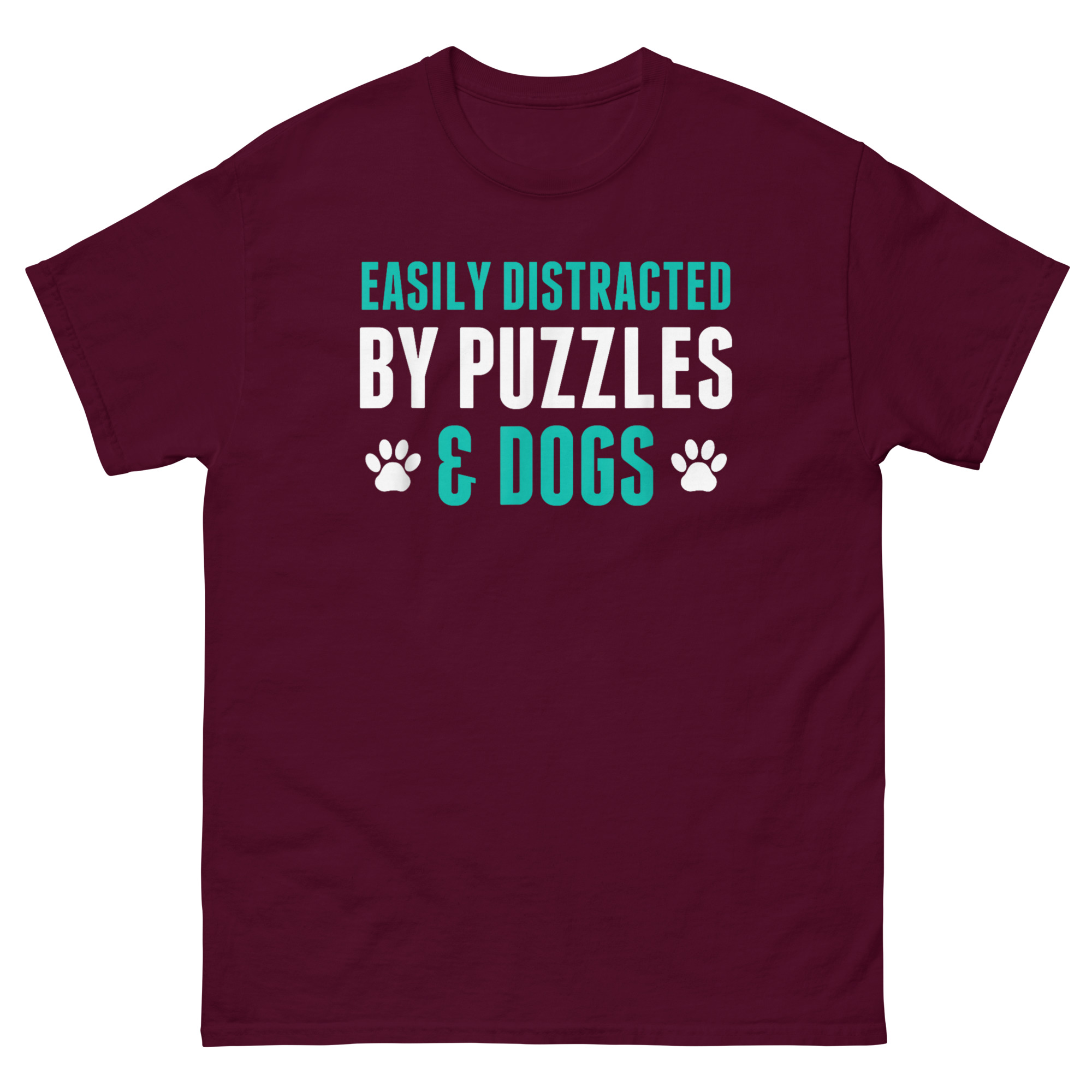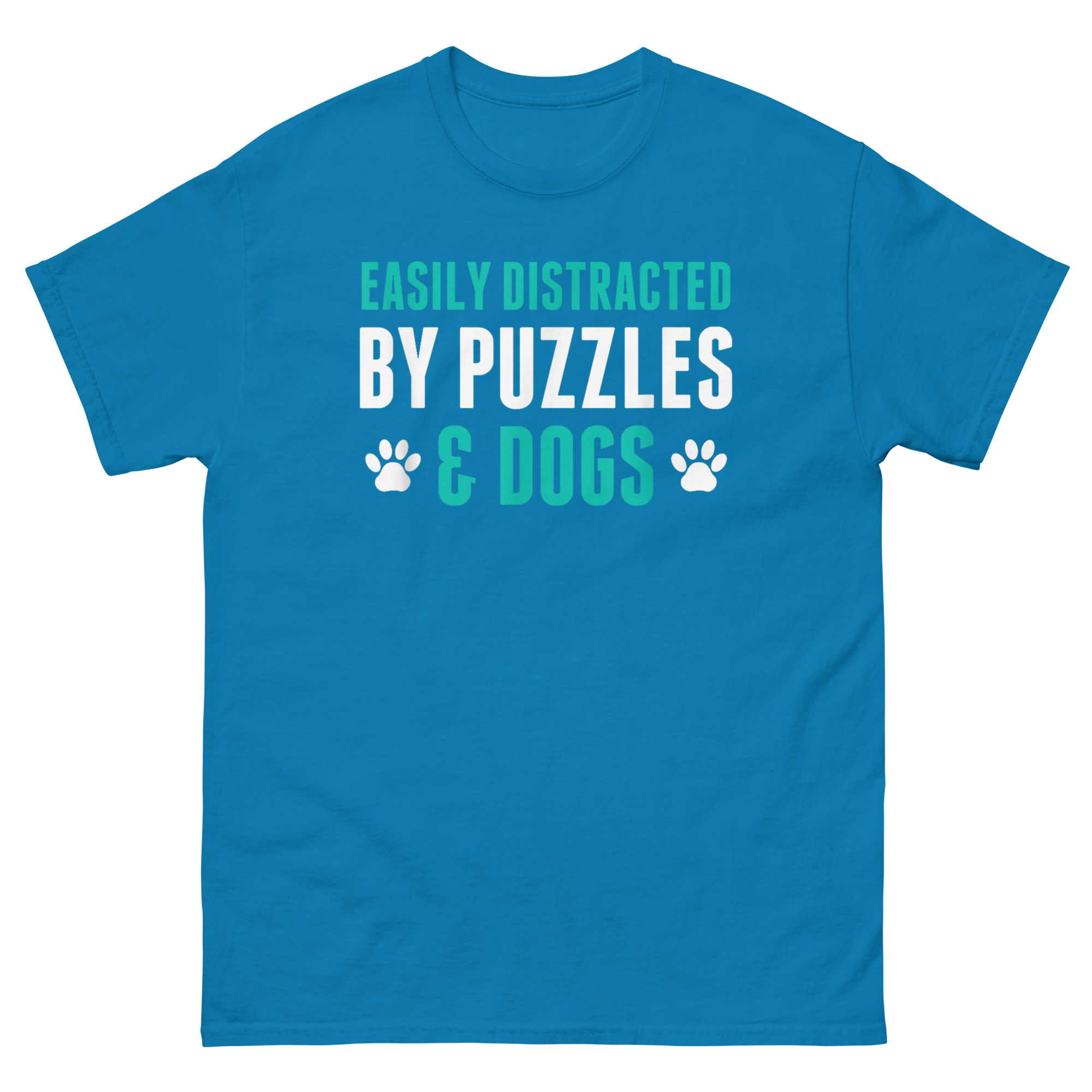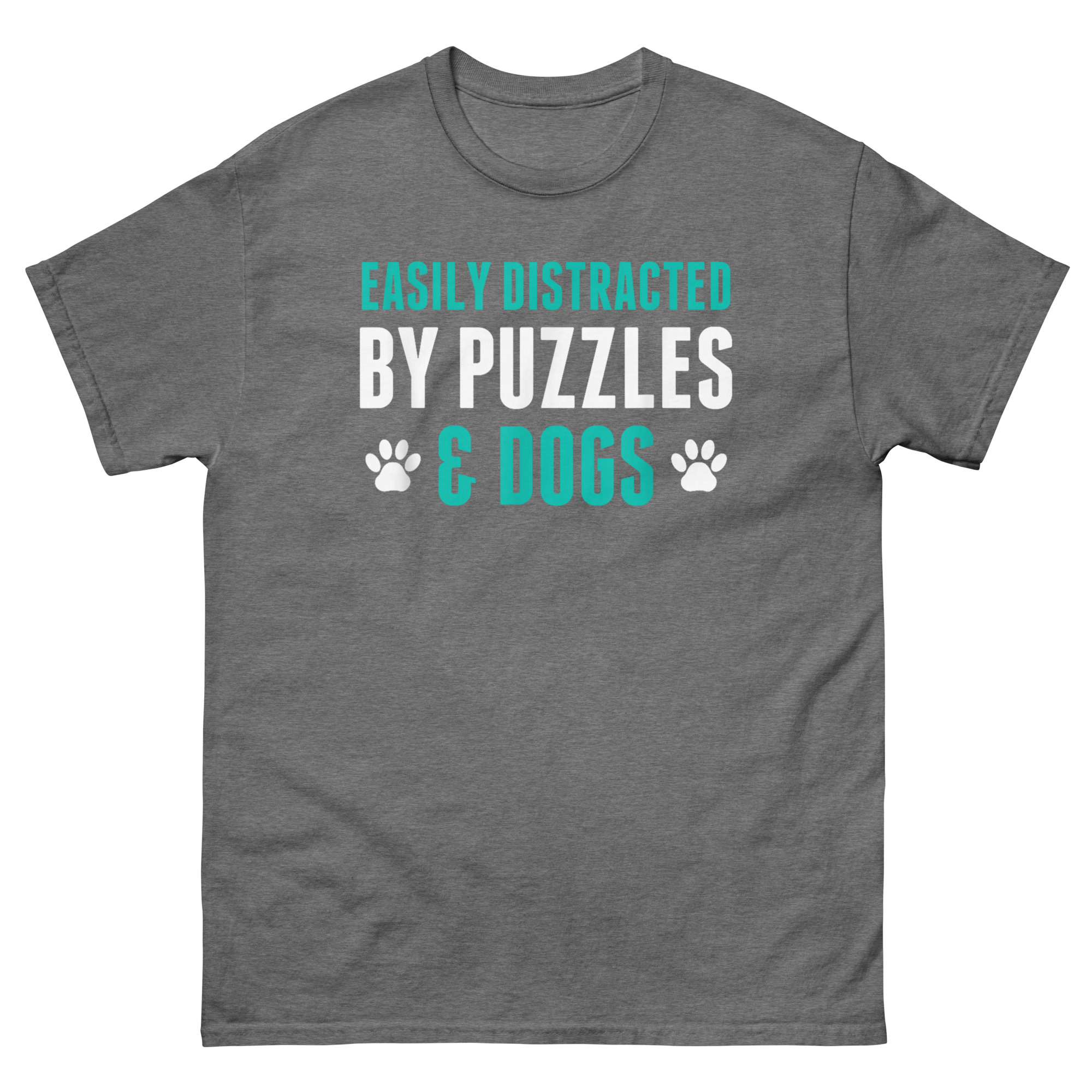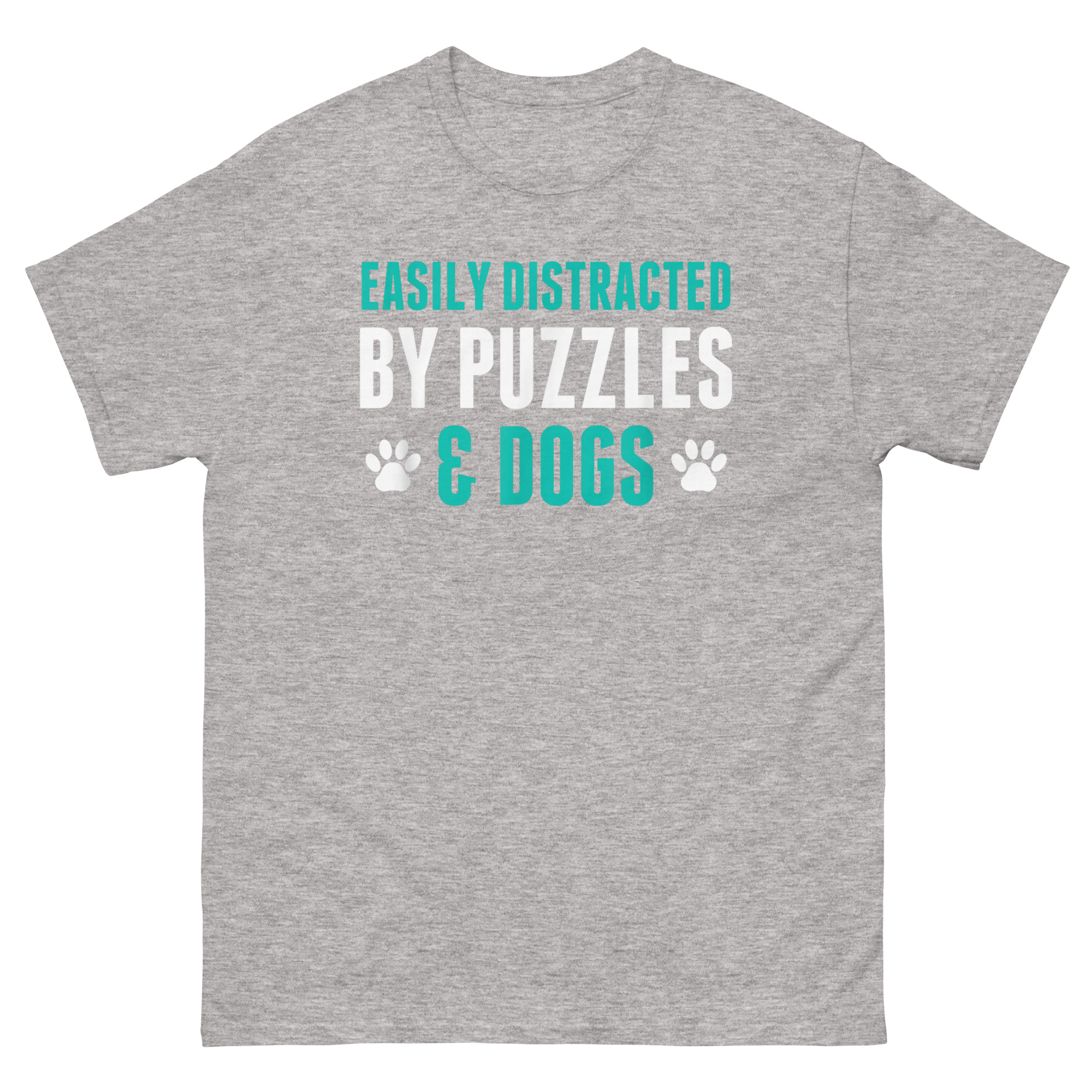 A shirt about cozy hobbies needs to be, well, cozy. That’s why Easily Distracted By Puzzles and Dogs T Shirt chose 100% cotton. It’s soft against your skin and breathable, perfect for long puzzling sessions on the living room floor. It’s also pre-shrunk, so it maintains its shape and size. The classic fit is roomy enough for comfort but still looks put-together. It’s the kind of shirt you can wear while puzzling at home or running out for coffee and puzzle glue.