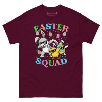 The Easter Squad Bunny T Shirt is a fun, modern take on traditional holiday apparel, featuring a trio of cool characters, a grey bunny, a yellow chick, and an egg with bunny ears, all wearing sunglasses and doing the dab. What makes it unique is the energetic, party-ready vibe that appeals to kids, teens, and adults alike, turning a classic holiday into a celebration of family connection. It is one of the most thoughtful family gifts for creating matching outfits that make Easter egg hunts and spring gatherings even more memorable.