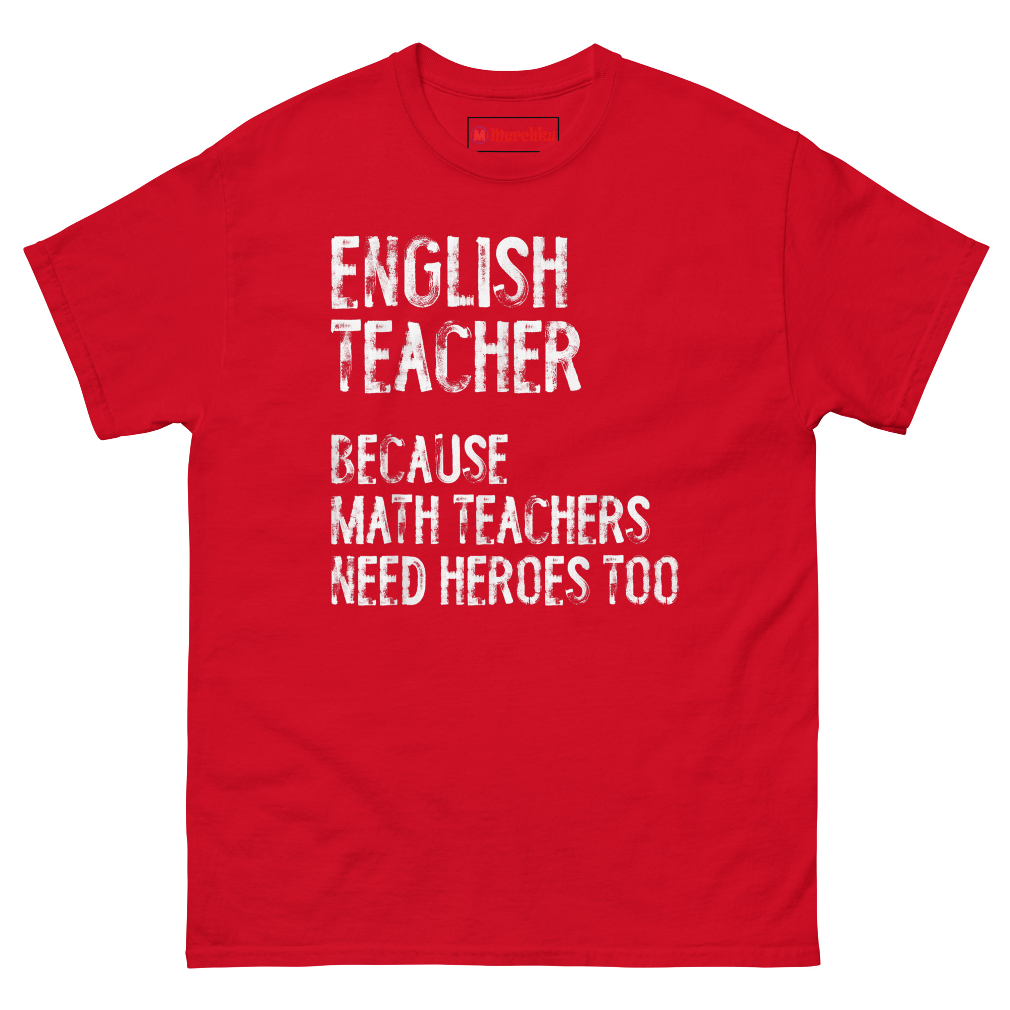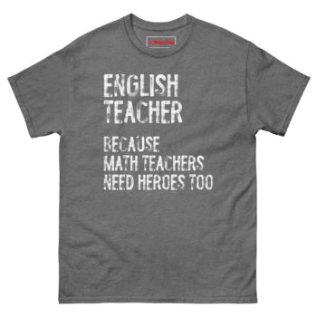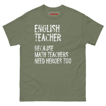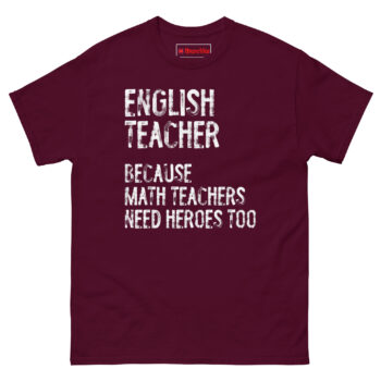 The inspiration for English Teacher Because Math Teachers Need Heroes Too T Shirt came from a faculty lunch conversation. A math teacher was joking about how everyone thinks her subject is the hardest, and my English teacher friend fired back, “Yeah, but who teaches them how to read the word problems?” The room laughed, but the comment stuck with me. There is a friendly rivalry between departments in every school. Math teachers get the reputation for being the logical, numbers-driven brains. English teachers are the ones who teach critical thinking, analysis, and communication. Without those skills, math problems are just numbers on a page. This shirt leans into that lighthearted tension. It positions the English teacher as the hero, not because math teachers are incompetent, but because literacy is the foundation for everything else. The distressed, weathered font reflects the reality of the profession. Teaching is tough work. It leaves its marks. This shirt is a badge of honor for the educators who have been in the trenches and still show up every day with a red pen and a passion for grammar.