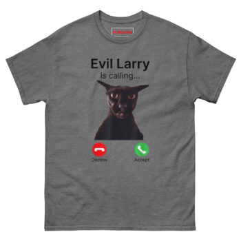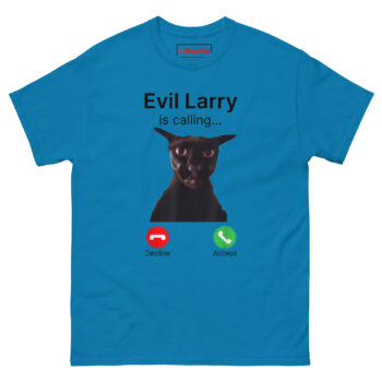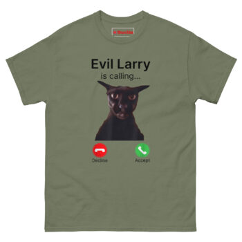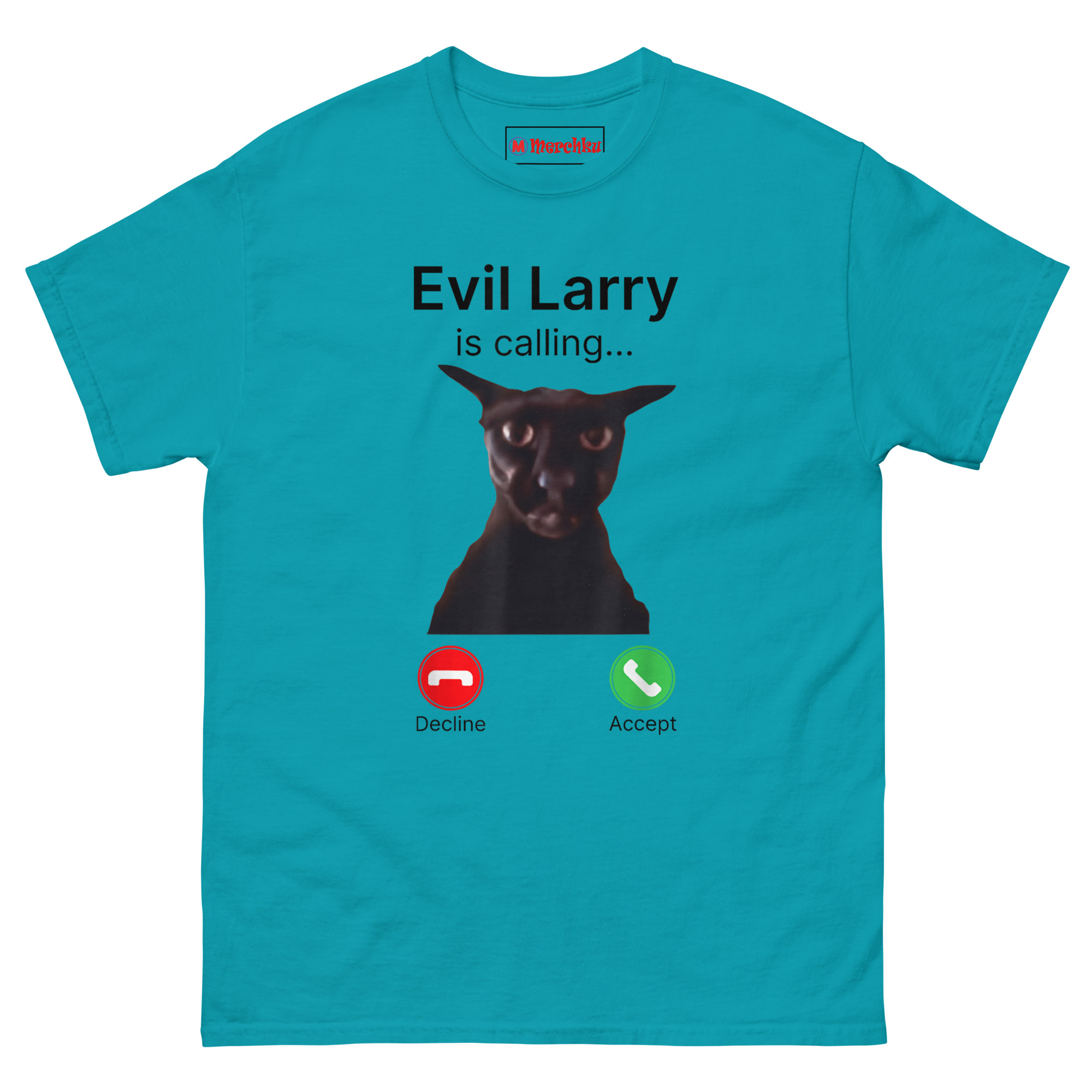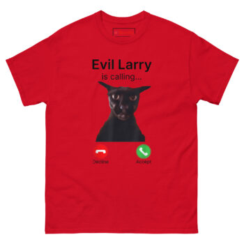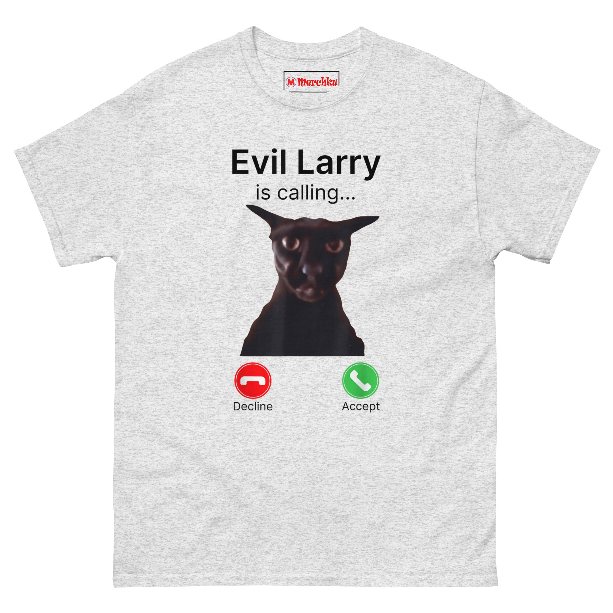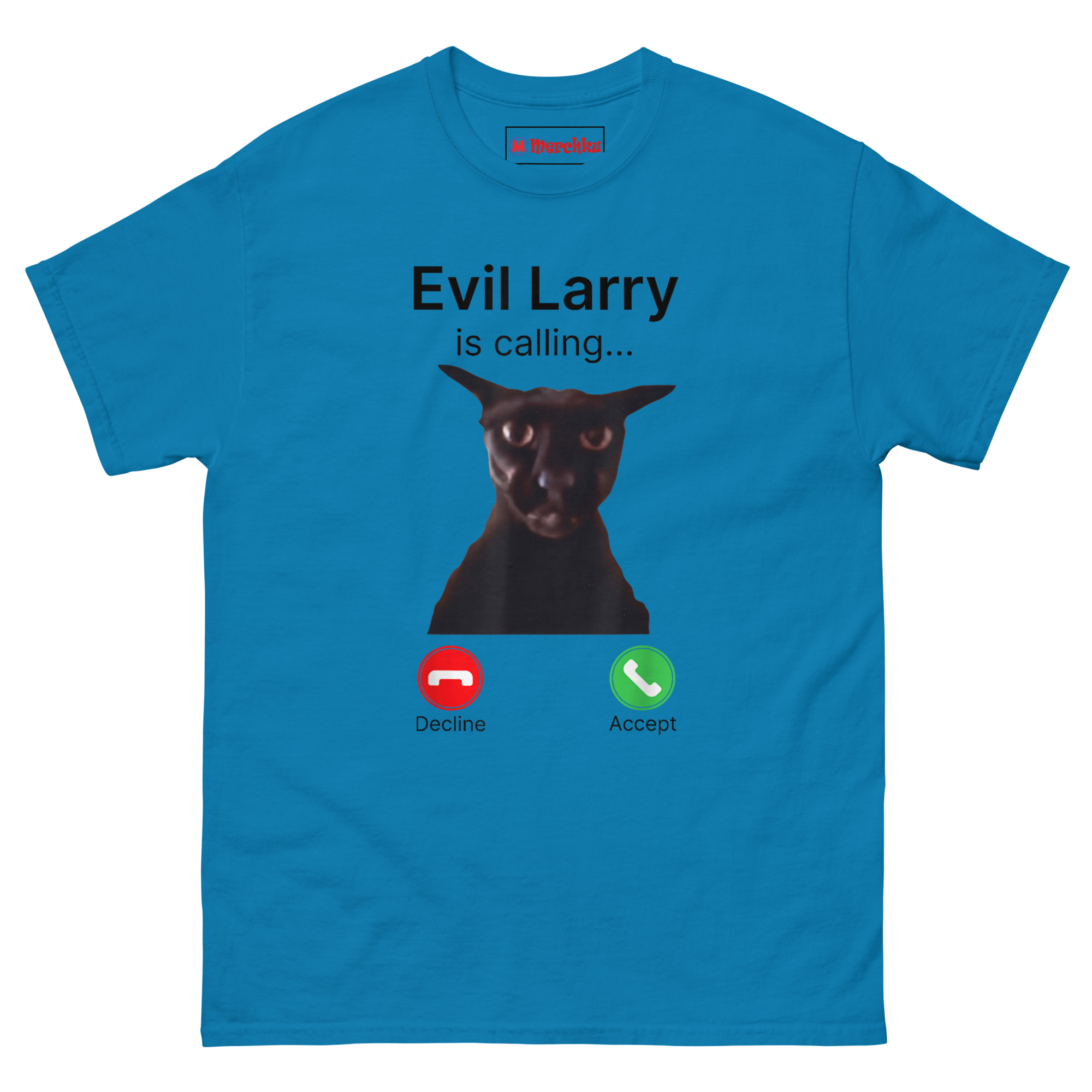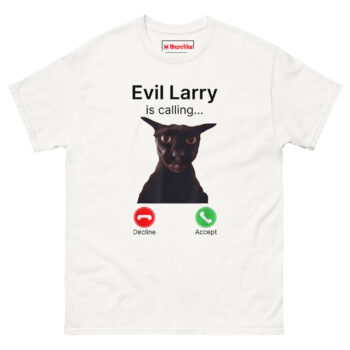 Evil Larry is Calling T Shirt started as a screenshot from a late-night scroll through a niche meme page. My friend sent me a photo of this angular, large-eared cat with an expression that looked both angry and confused. “Evil Larry is calling,” she typed. And we lost it.