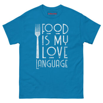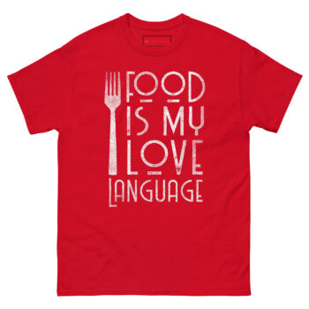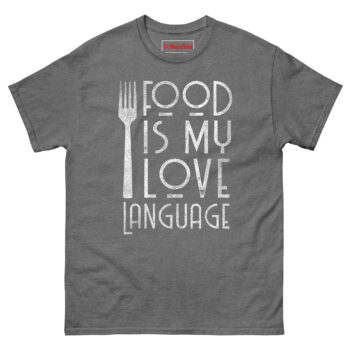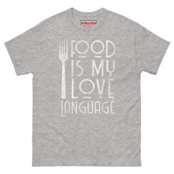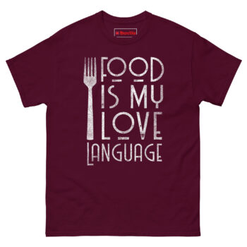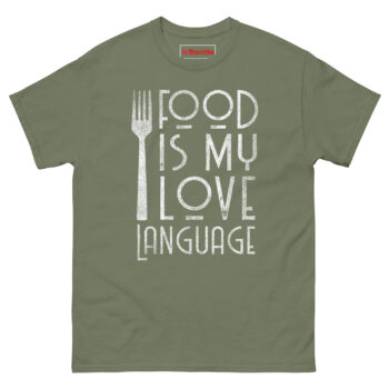 Food is My Love Language T Shirt idea hit while watching a friend pack a cooler full of homemade meals for a neighbor who just had surgery. She didn’t write a card. She didn’t send flowers. She just cooked. That act of service got us thinking about how many people express love through food rather than words. We wanted to create a shirt that captured that sentiment without being overly sentimental. The tall, modern sans-serif font gives it a clean, urban feel, while the distressed typography foodie tees texture adds warmth and authenticity, like a well-used wooden spoon or a recipe card stained from decades of use. The vertical fork icon anchors the design visually, reinforcing the culinary theme without shouting. It is personality statement tees with substance.