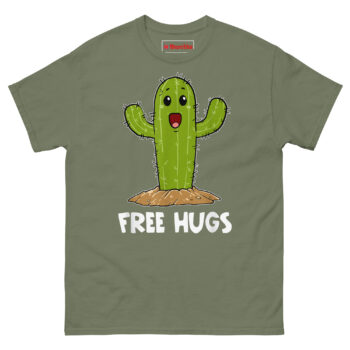 The Free Hugs Prickly Pear Cactus T Shirt offers the warmest, most enthusiastic embrace from the one plant you should never actually hug. It features an adorable kawaii-style cactus with wide hopeful eyes and a huge smile, arms stretched wide for a hug, paired with the ironic promise “FREE HUGS” below. Designed for introverts, plant lovers, and anyone searching for funny sarcastic gifts for introverts, this shirt is a wearable paradox that perfectly captures a prickly but loveable personality.