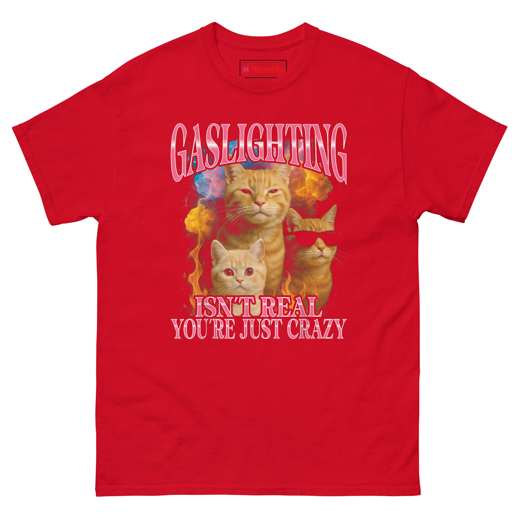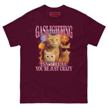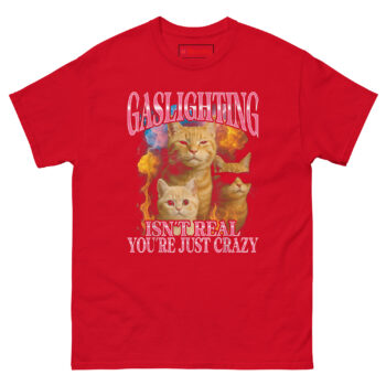 Yes, the irony is the whole point. Whether you’re hunting for a Funny gift for fans of ironic internet memes or Edgy ginger cat apparel for sarcastic personalities, this Gaslighting Isnt Real Youre Just Crazy T Shirt delivers soft cotton and unhinged energy. Grab it as a Unique birthday gift for people who love weird-core fashion before the orange cats take over your group chat.