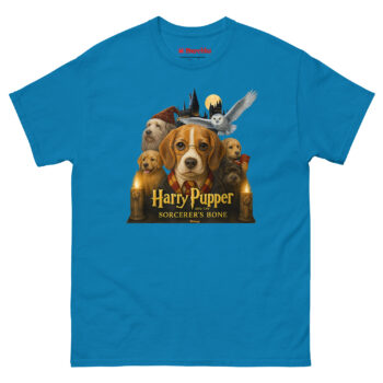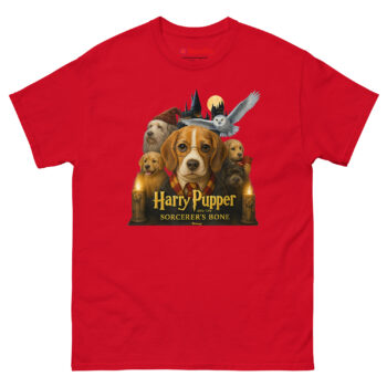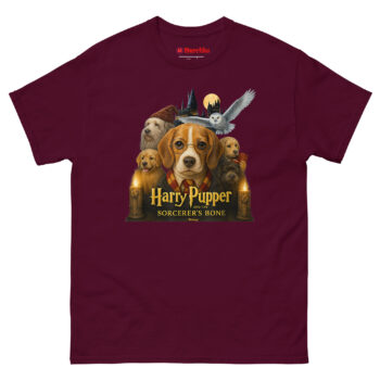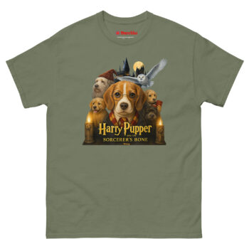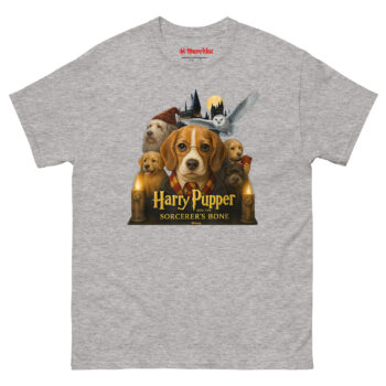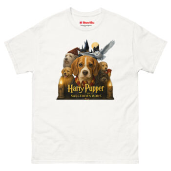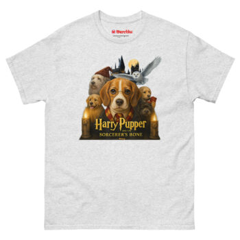 The Harry Pupper T Shirt reimagines a beloved fantasy story with a cast of adorable canine characters. A soulful Beagle in round glasses and a striped scarf leads his loyal doggy friends on a quest for the Sorcerer’s Bone. It’s a magical gift ideas for dog lovers who appreciate a clever parody and a good laugh.