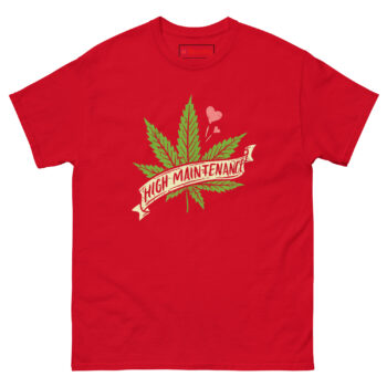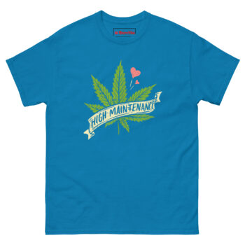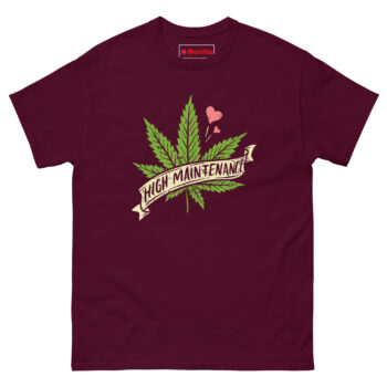 High Maintenance Weed T Shirt concept started with a conversation about how people use the term “high maintenance” as an insult. Someone pointed out that if caring about quality makes you high maintenance, then plenty of people are happy to wear that label proudly.