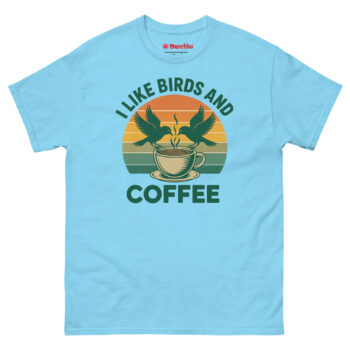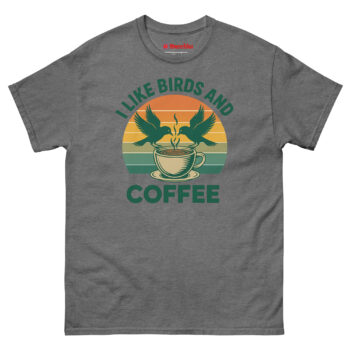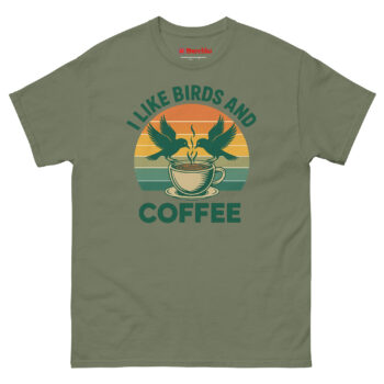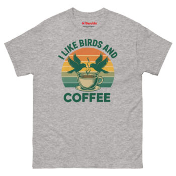 Ready to wear your two favorite things? Grab your I Like Birds and Coffee T Shirt now. Click your size above to add this t shirt for bird watchers who love coffee to your cart. Whether it’s a gift for an ornithologist coffee addict or a personal statement, this shirt honors the dawn patrol in style. Order now and start your day right.