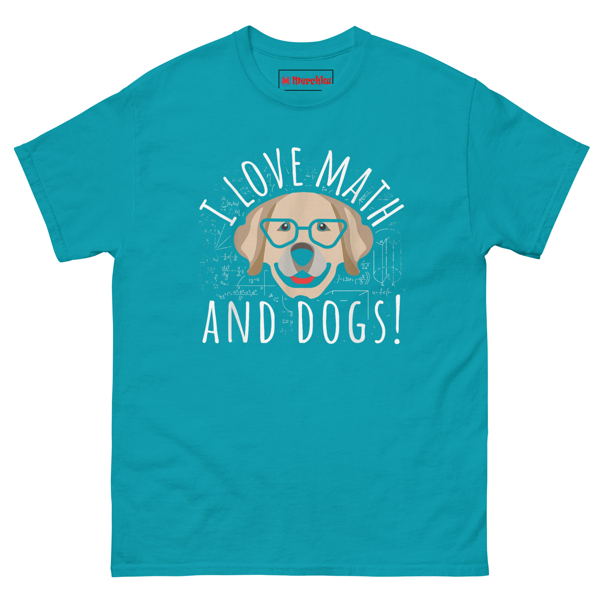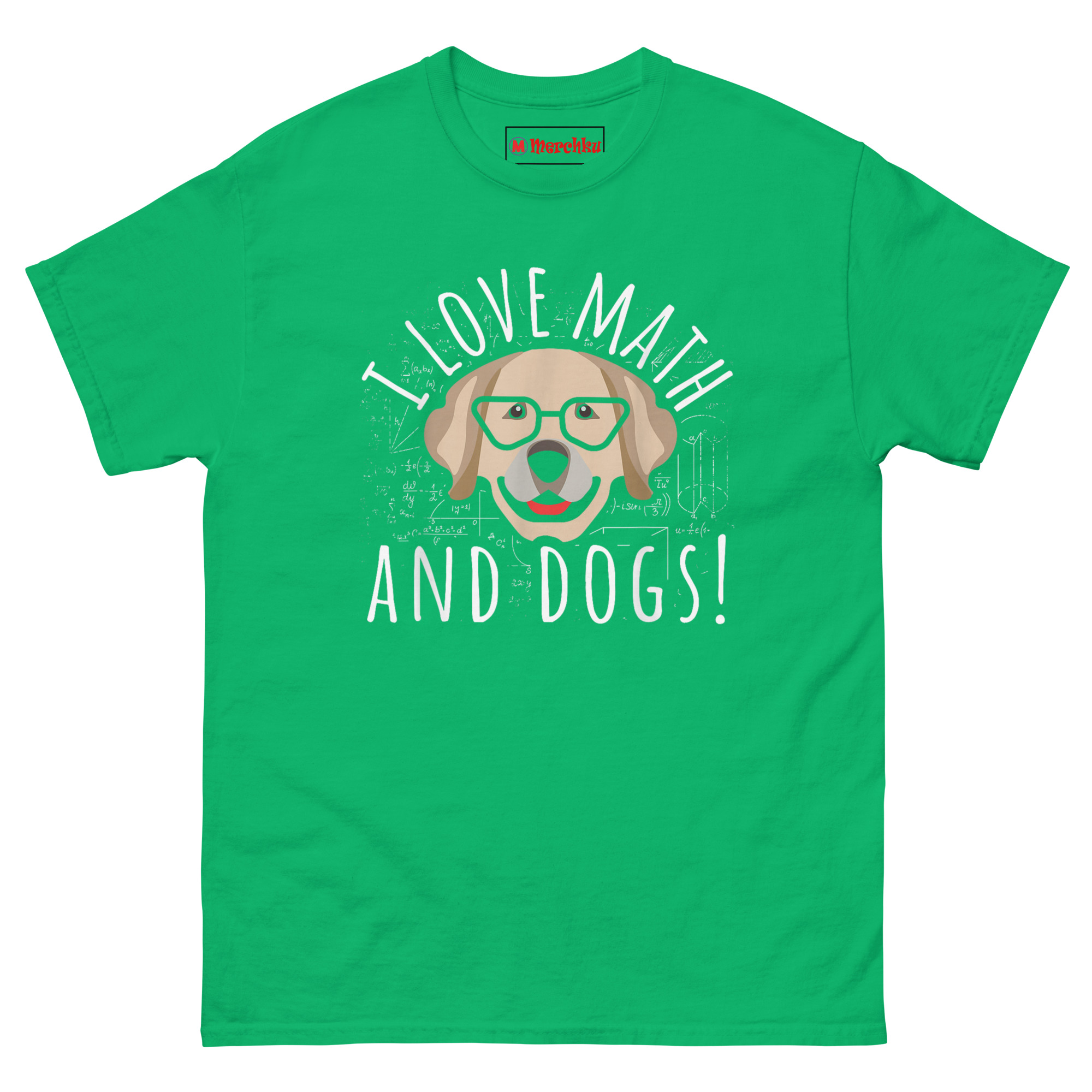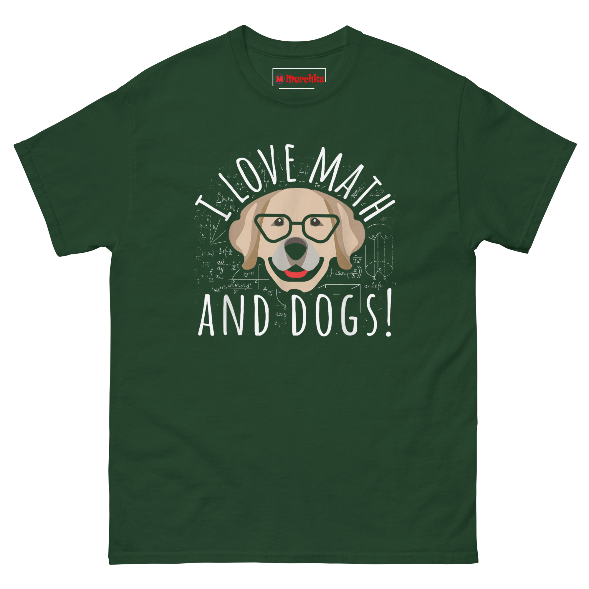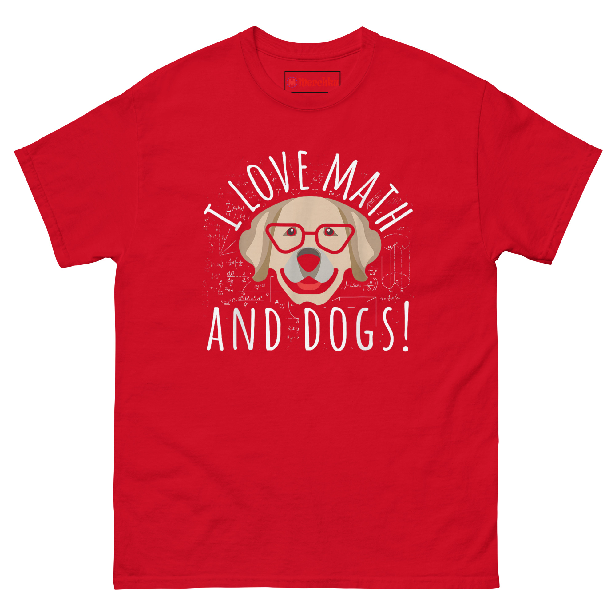 This I Love Math And Dogs T Shirt design started with a conversation between two friends, one a high school calculus teacher, the other a devoted Golden Retriever owner. They joked that their dog seemed to understand geometry better than some students, always calculating the perfect angle to snag a dropped snack. That playful idea stuck.