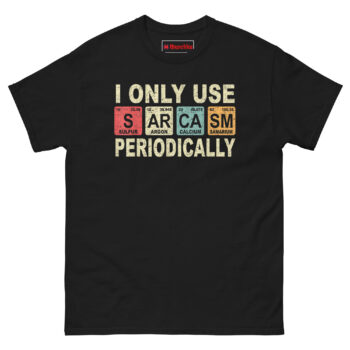The I Only Use Sarcasm Periodically T Shirt turns a quick wit into a science lesson. This Unique Funny Chemistry Joke Sarcasm Periodic Table Tee For Science Teachers & Sarcastic People replaces the word “sarcasm” with real elements (Sulfur, Argon, Calcium, Samarium) for a smart, wearable punchline. Made from 100% cotton, it’s built for anyone who loves lab-grade humor without the itchy fabrics.
