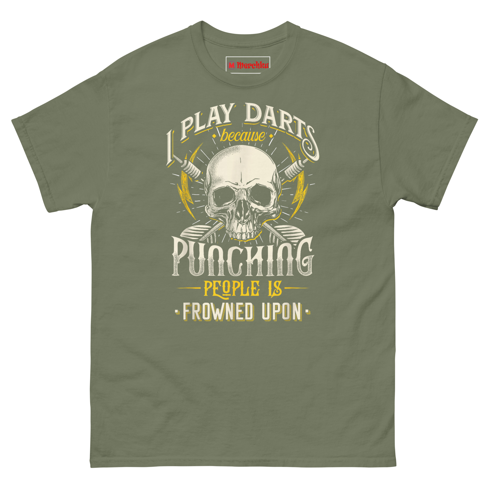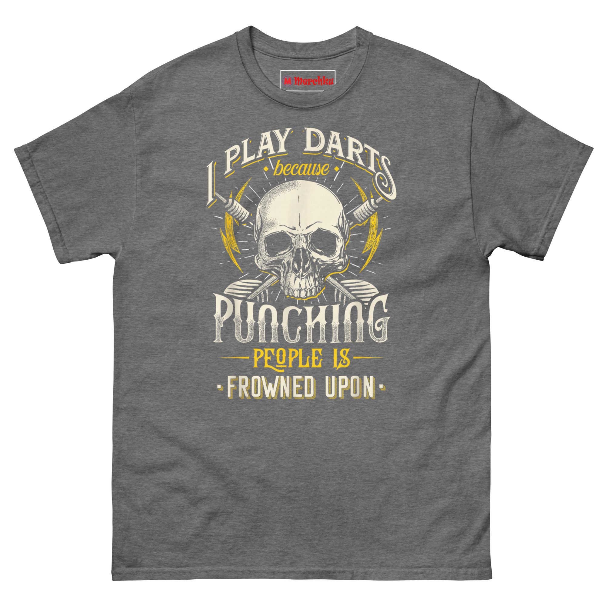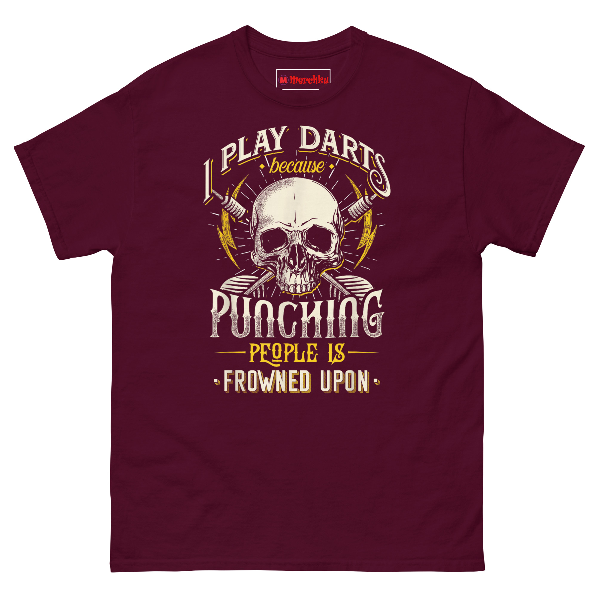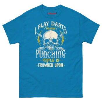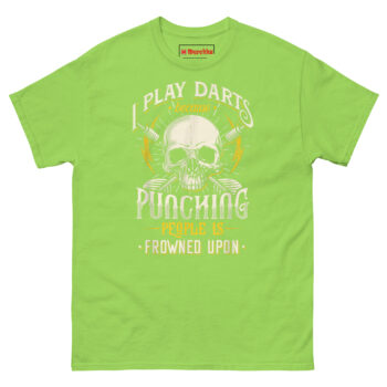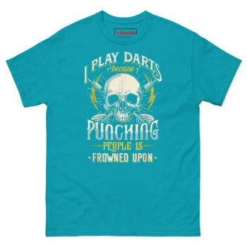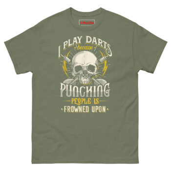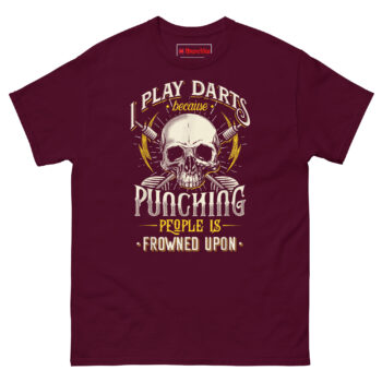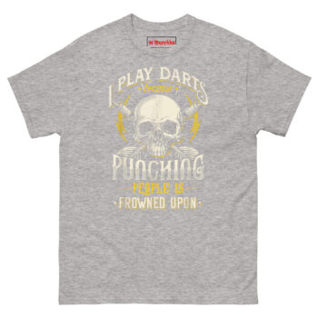 If you are searching for funny pub sports gifts for men that actually get worn, the I Play Darts Because Punching People is Frowned Upon T Shirt delivers the perfect balance of edge and humor. It speaks directly to darts players, pub league competitors, and anyone who understands the therapeutic value of a well-aimed throw. This piece of sarcastic anger management humor apparel turns a simple game into a statement. Grab this skull graphic tee today and let your opponents know you are playing for more than just points.