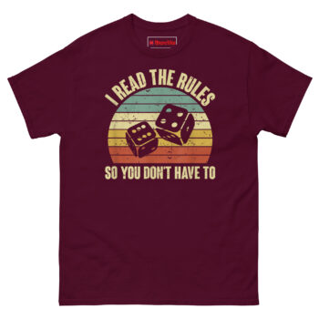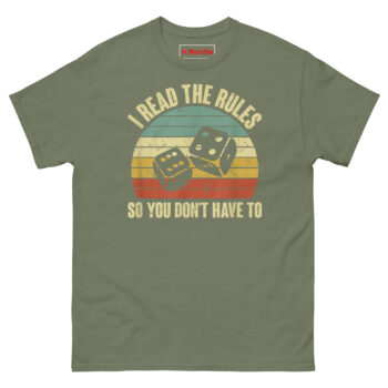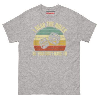 If you are searching for funny board game gifts for adults that actually mean something, the I Read The Rules So You Don’t Have To T Shirt delivers. It speaks directly to the dungeon master, the strategy nerd, and the patient soul who explains line-of-sight rules for the tenth time. This piece of retro tabletop gaming graphic tees combines vintage dice rolling charm with the humble brag you have earned. Grab this rulebook reader t-shirt today and let your group know who made game night possible.