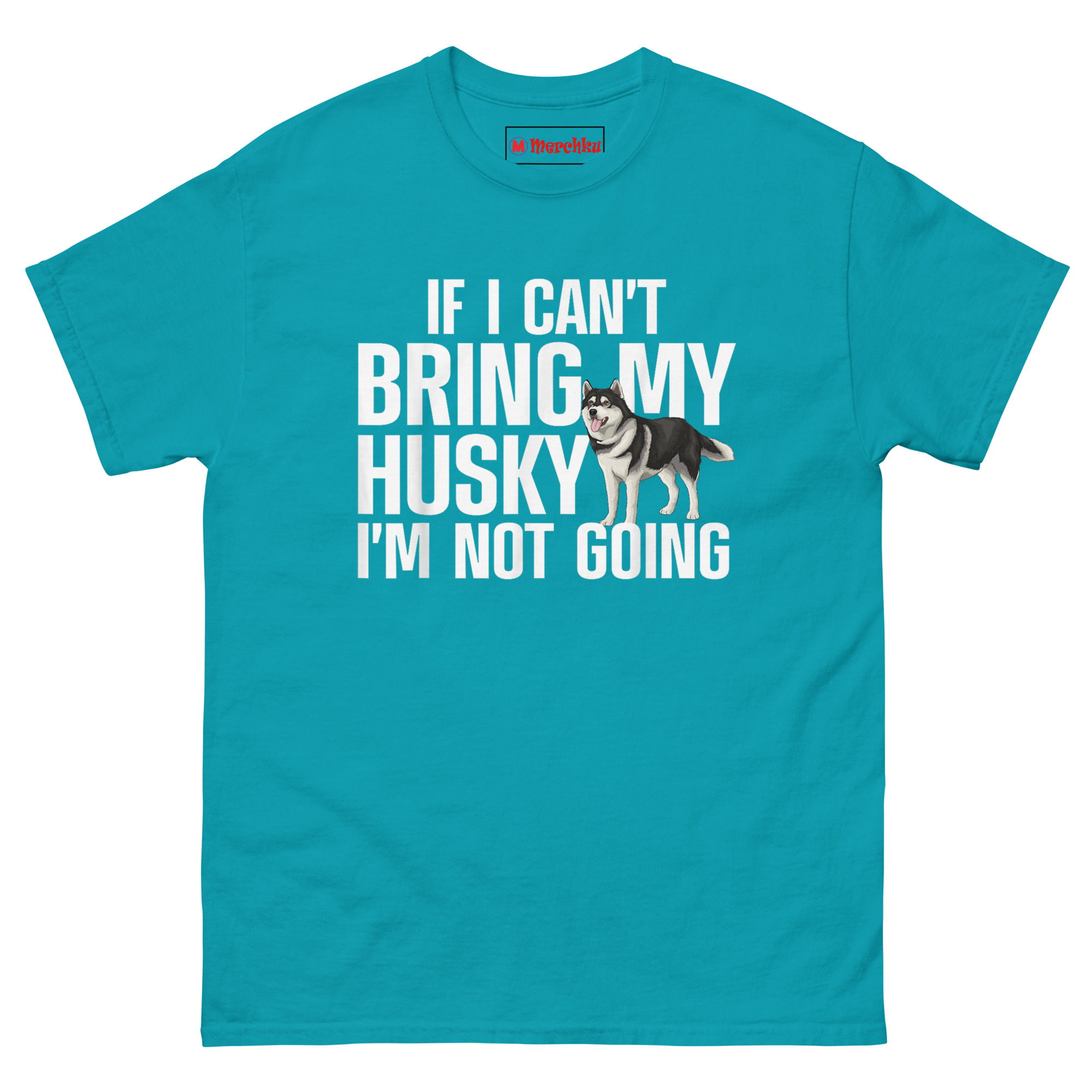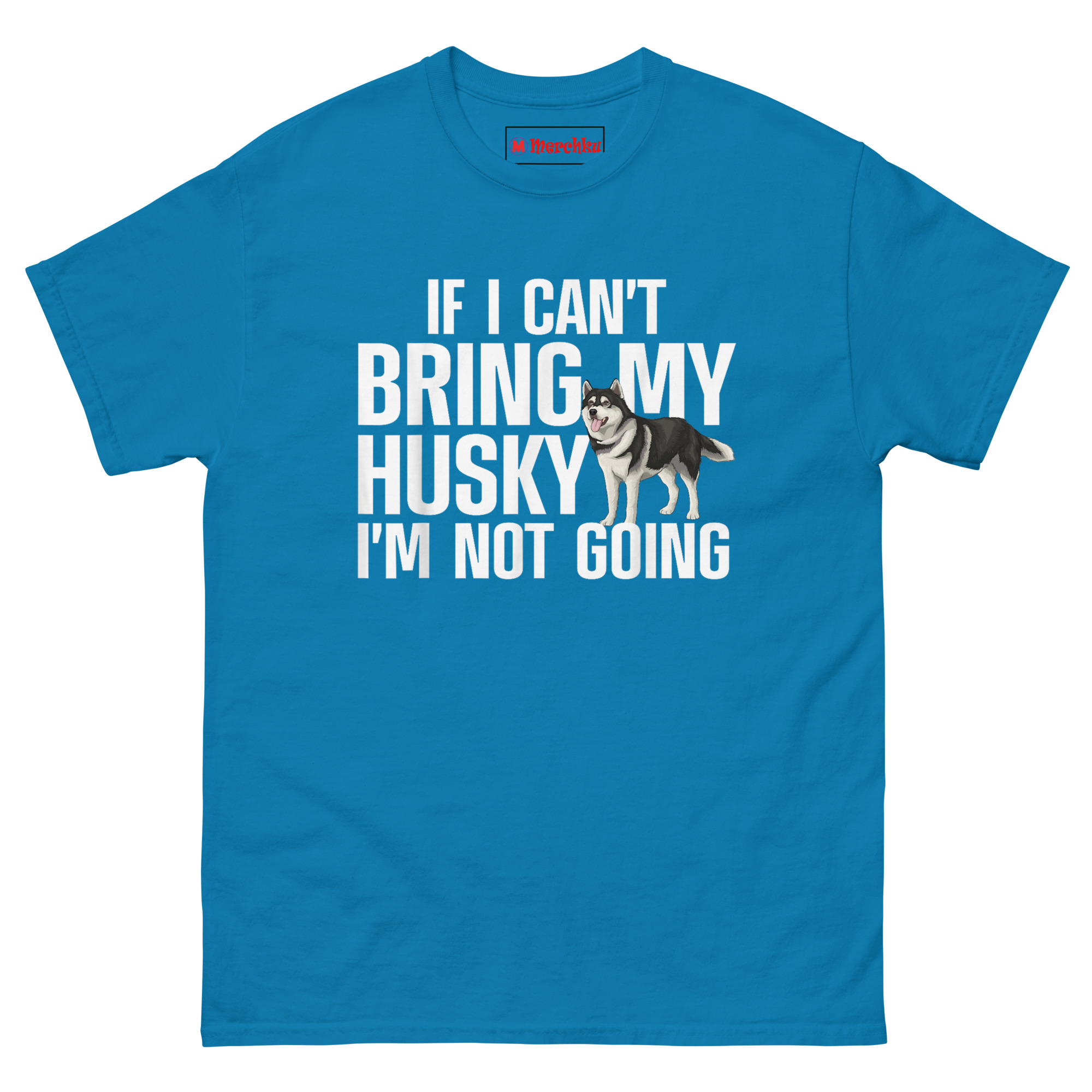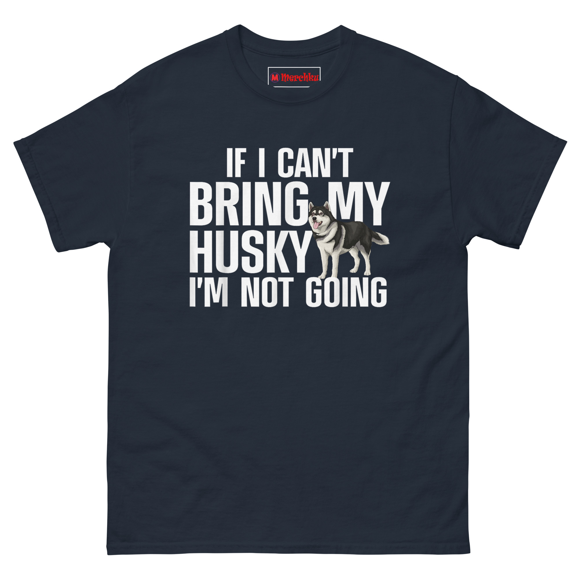If I Can’t Bring My Husky I’m Not Going T Shirt idea came from watching a friend RSVP “no” to three different parties because they weren’t dog-friendly. She wasn’t being difficult, she just genuinely preferred her Husky’s company over awkward small talk. We wanted to capture that unapologetic loyalty in a design that balanced humor with genuine affection. The bold, stacked sans-serif font delivers the message loud and clear. But breaking through the text, you see a detailed, realistic Husky stepping out from behind the word “HUSKY.” That detail is intentional. It represents how these dogs don’t just accompany us, they insert themselves into every part of our lives, including our identity. The friendly, panting expression softens what could be a harsh statement, reminding everyone that this stance comes from a place of deep love. It is Husky Obsessed Apparel with heart.