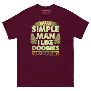The I’m A Simple Man I Like Doobies and Boobies T Shirt is a 100% cotton classic tee that tells the truth without apology. As one of the most honest humorous gifts for weed smokers & cannabis lovers, this design pairs realistic cannabis buds with a famously straightforward confession. If you appreciate life’s simplest pleasures and don’t take yourself too seriously, this shirt fits your personality perfectly.