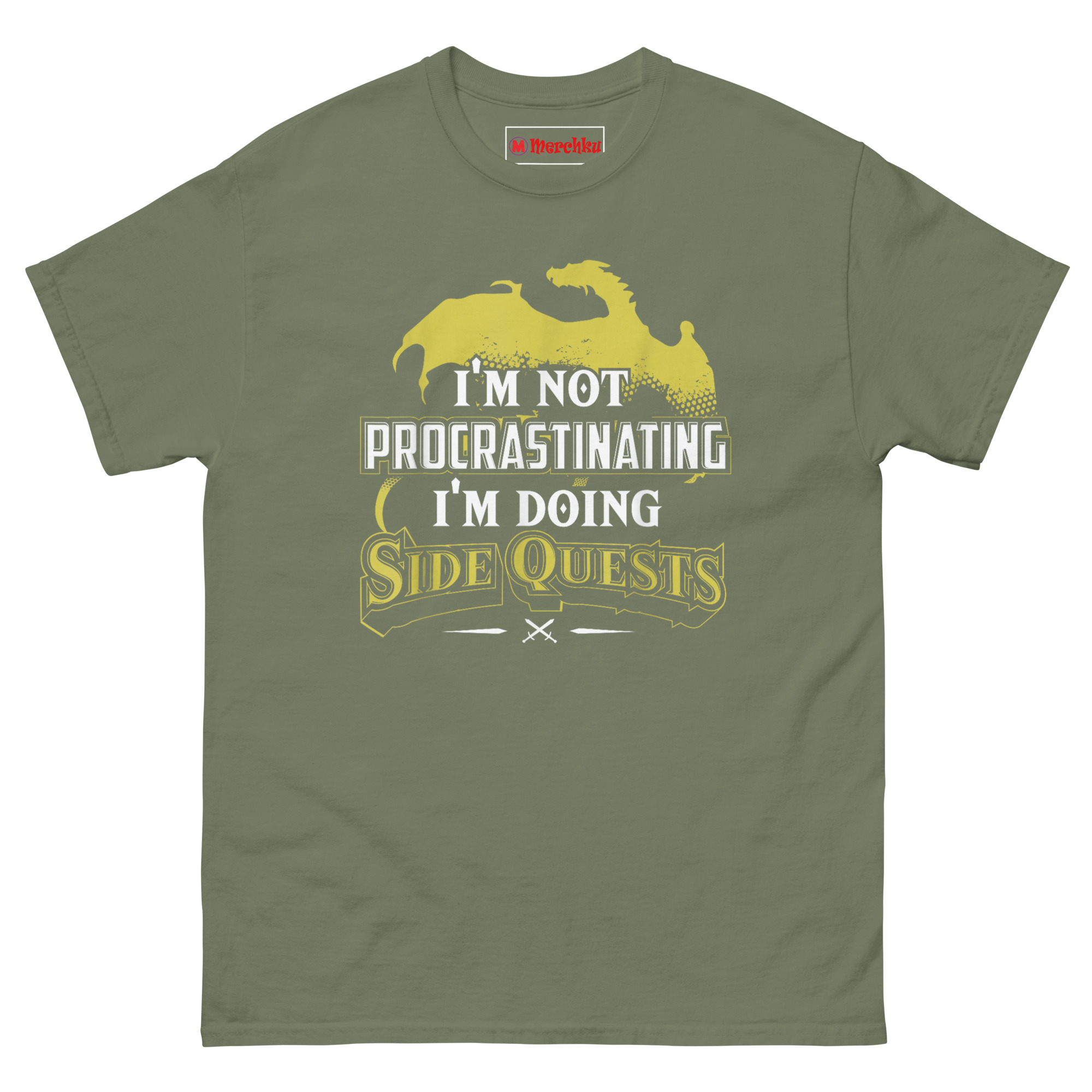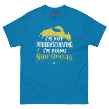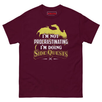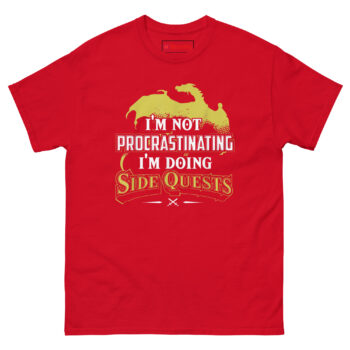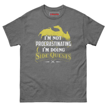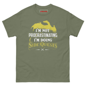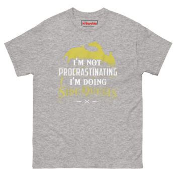 The I’m Doing Side Quest T Shirt transforms everyday procrastination into an epic fantasy adventure. This graphic tee features a golden dragon, medieval typography, and crossed swords to rebrand your delayed responsibilities as heroic RPG gamer apparel. Designed for video game lovers, tabletop roleplaying fans, and anyone who understands the joy of clearing a map before facing the final boss.