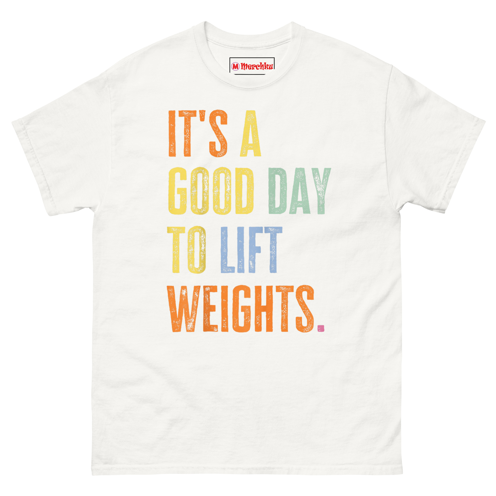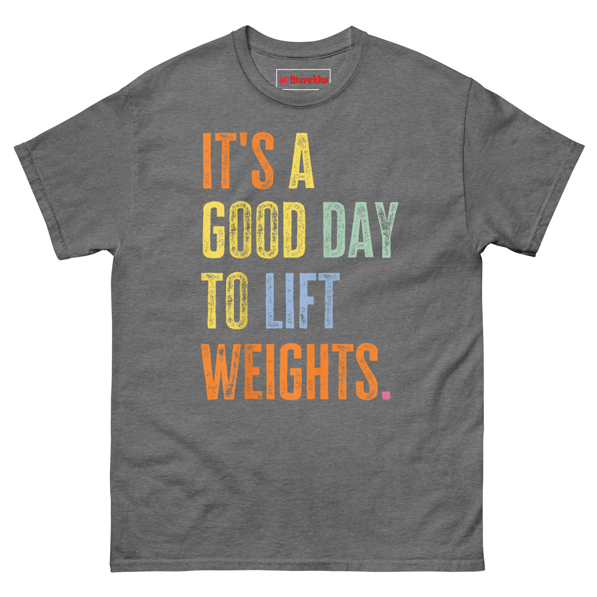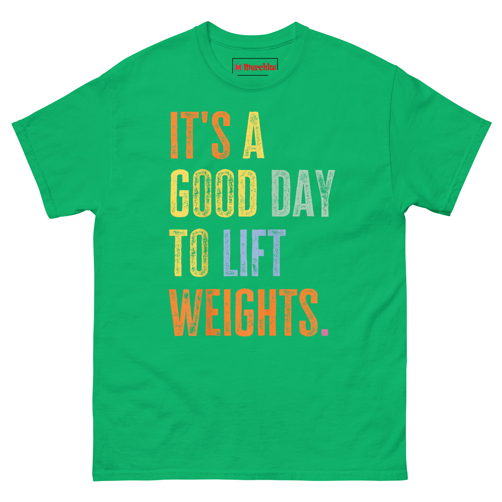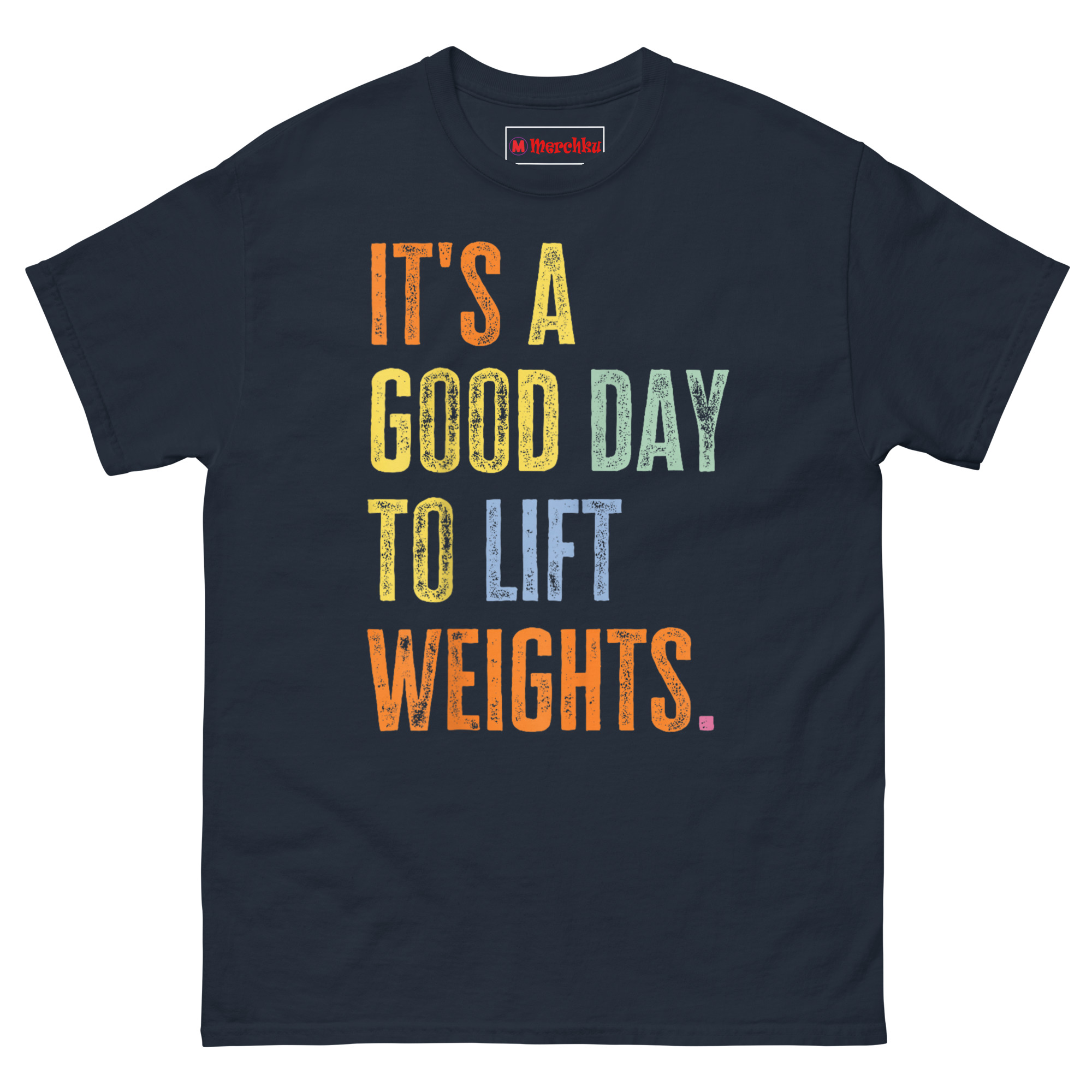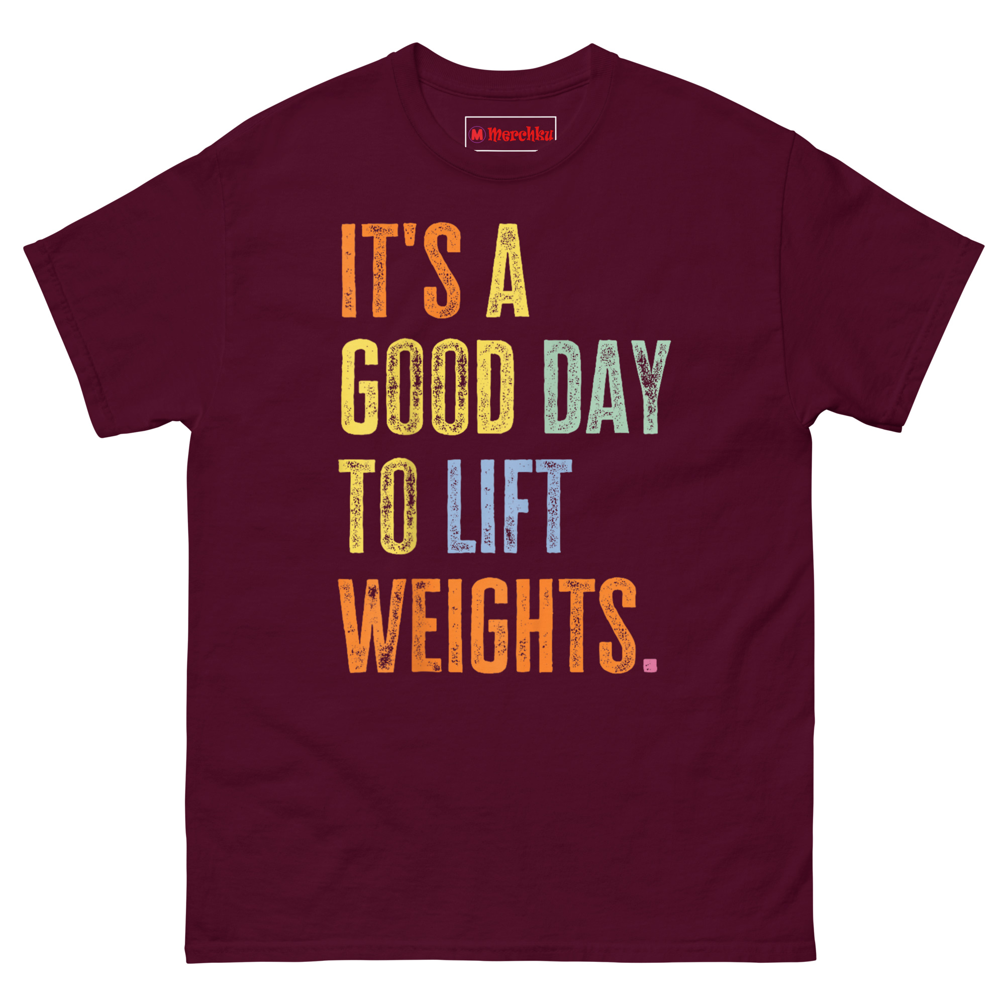 The It’s A Good Day To Lift Weights T Shirt is a bold, typographic tee designed for anyone who views the gym as a mental reset rather than a chore. What makes it unique is the stacked, multi-color text with a weathered, vintage-wash finish that stands out from typical workout apparel. It is made for powerlifters, gym enthusiasts, and anyone who believes that heavy lifting makes any day better.