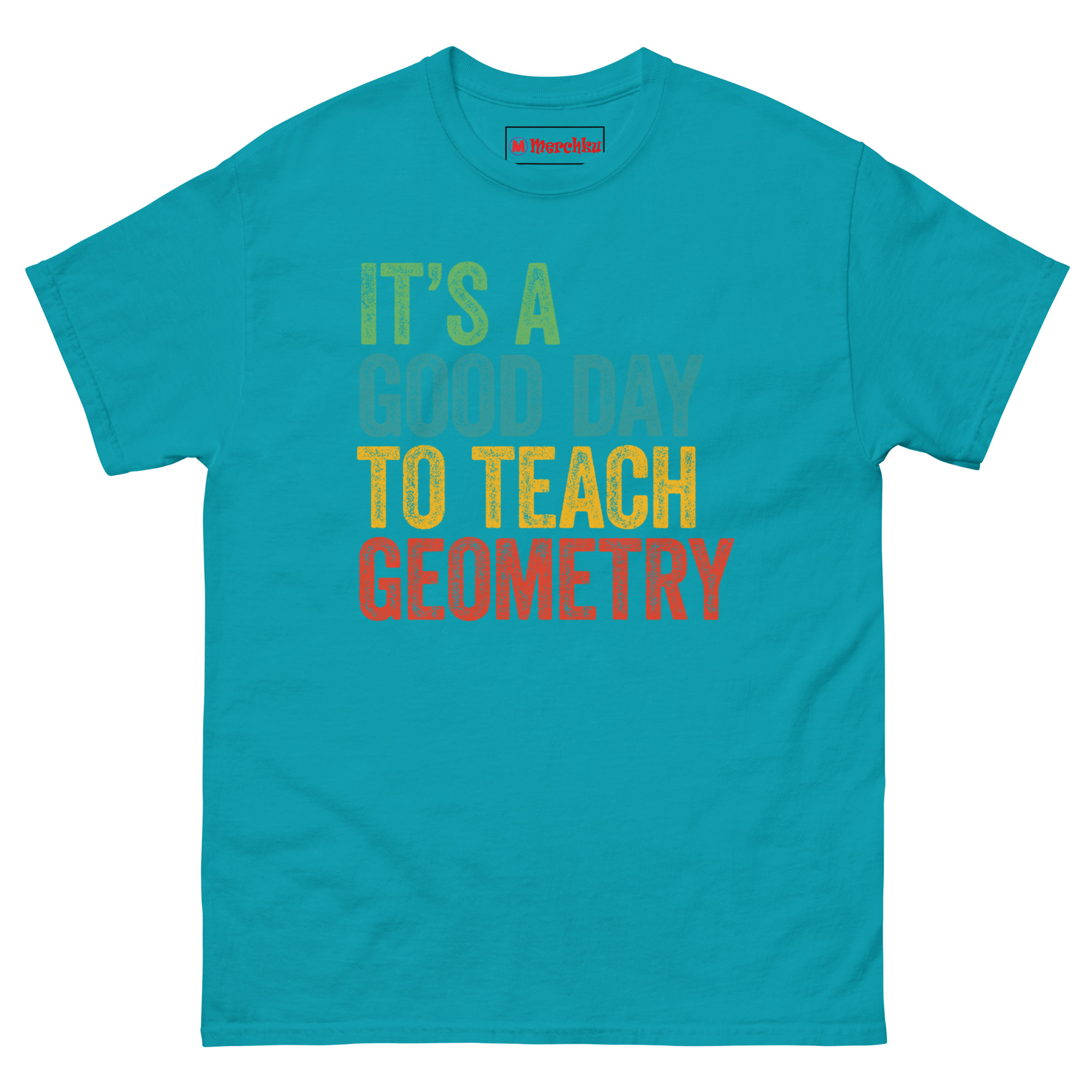 It’s A Good Day To Teach Geometry T Shirtcame from a conversation with a high school geometry teacher who admitted that her students often walk in thinking the subject is intimidating. She wanted a way to set a different tone, something that said math can be welcoming, even fun. “If I walk in wearing something that makes them smile,” she said, “they are already halfway there.”