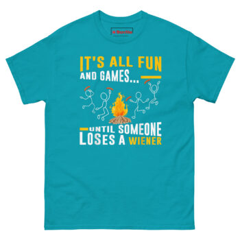 Stop pretending your campfire cooking goes perfectly every time. Own the mess. Whether you need Sarcastic BBQ shirt for men who love grilling or a Unique gift for campers with a sense of humor, this It’s All Fun and Games Until Someone Loses Their Weiner T Shirt delivers quality cotton and real laughs. Pick your size before the next hot dog hits the dirt.