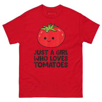 Just a Girl Who Loves Tomatoes T Shirt design started with a friend who grows tomatoes on her apartment balcony. She doesn’t have space for much, just a few pots, but every morning she’s out there, checking her plants, talking to them, celebrating every new tomato that turns red. Someone once asked her why she puts so much effort into a few plants. She just smiled and said, “I don’t know. I just really love tomatoes. They make me happy.”