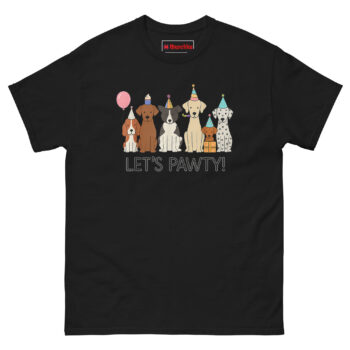 The Let’s Pawty T Shirt brings together six happy dogs in party hats, complete with balloons and a playful pun that’s impossible to read without smiling. It’s designed for dog owners who throw birthday parties for their pups, celebrate “Gotcha Days,” or simply believe every day with a dog is worth celebrating.