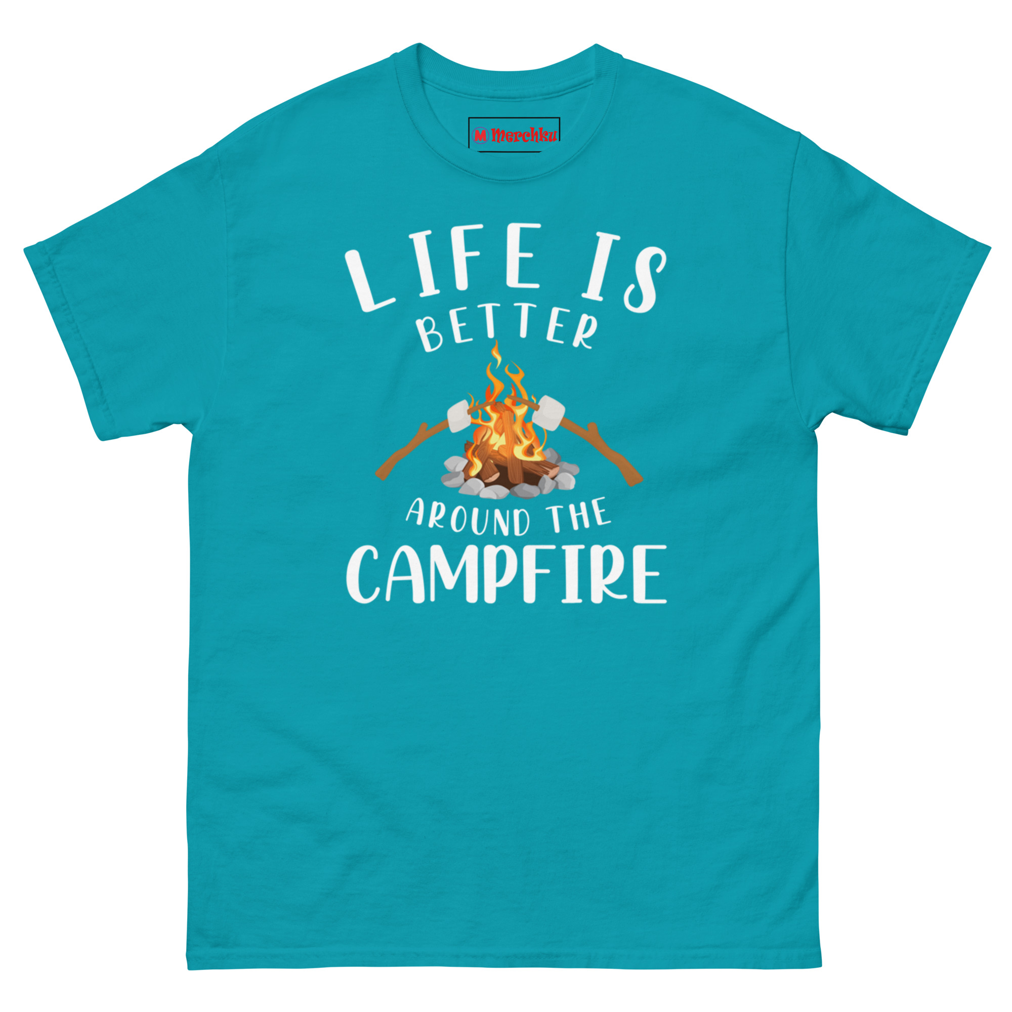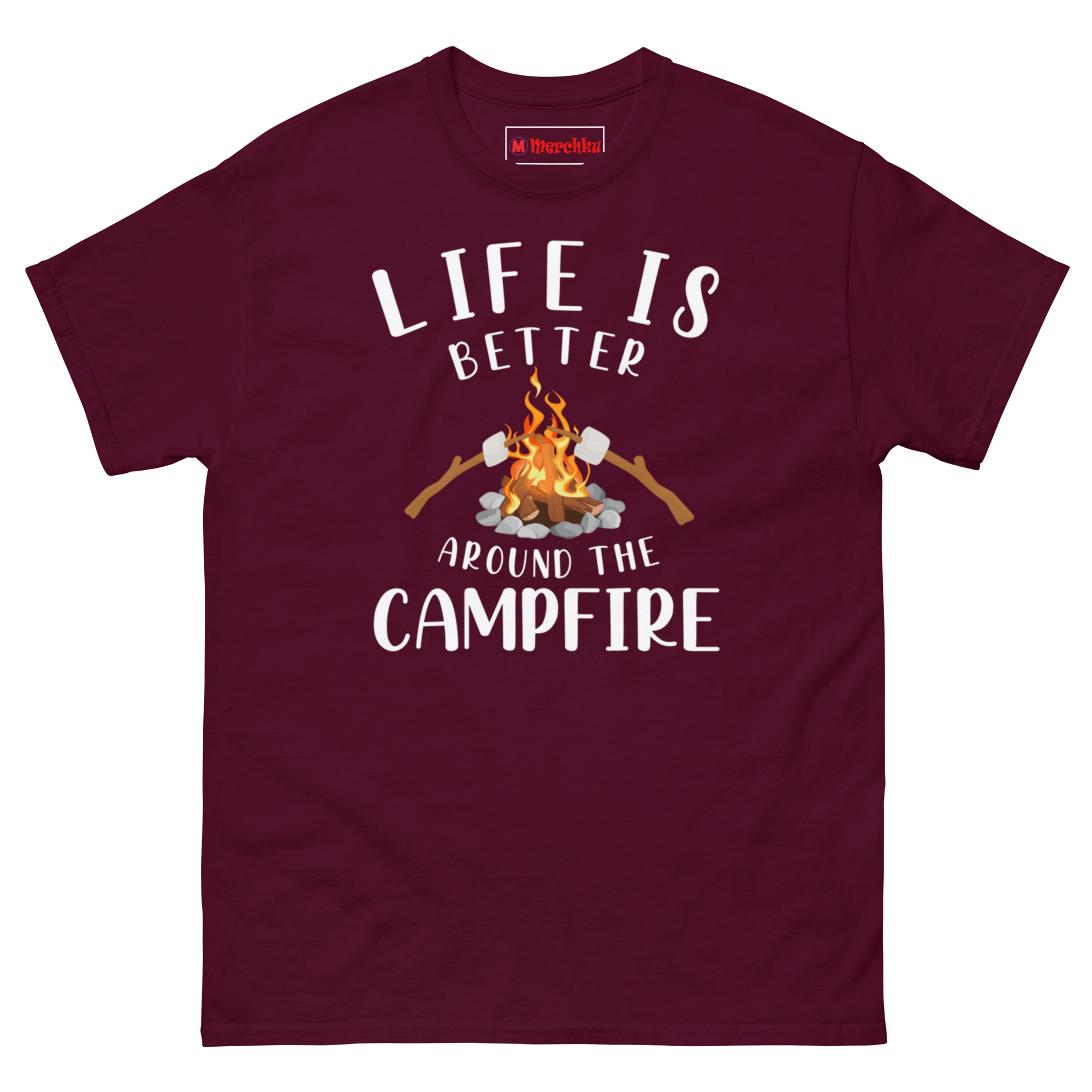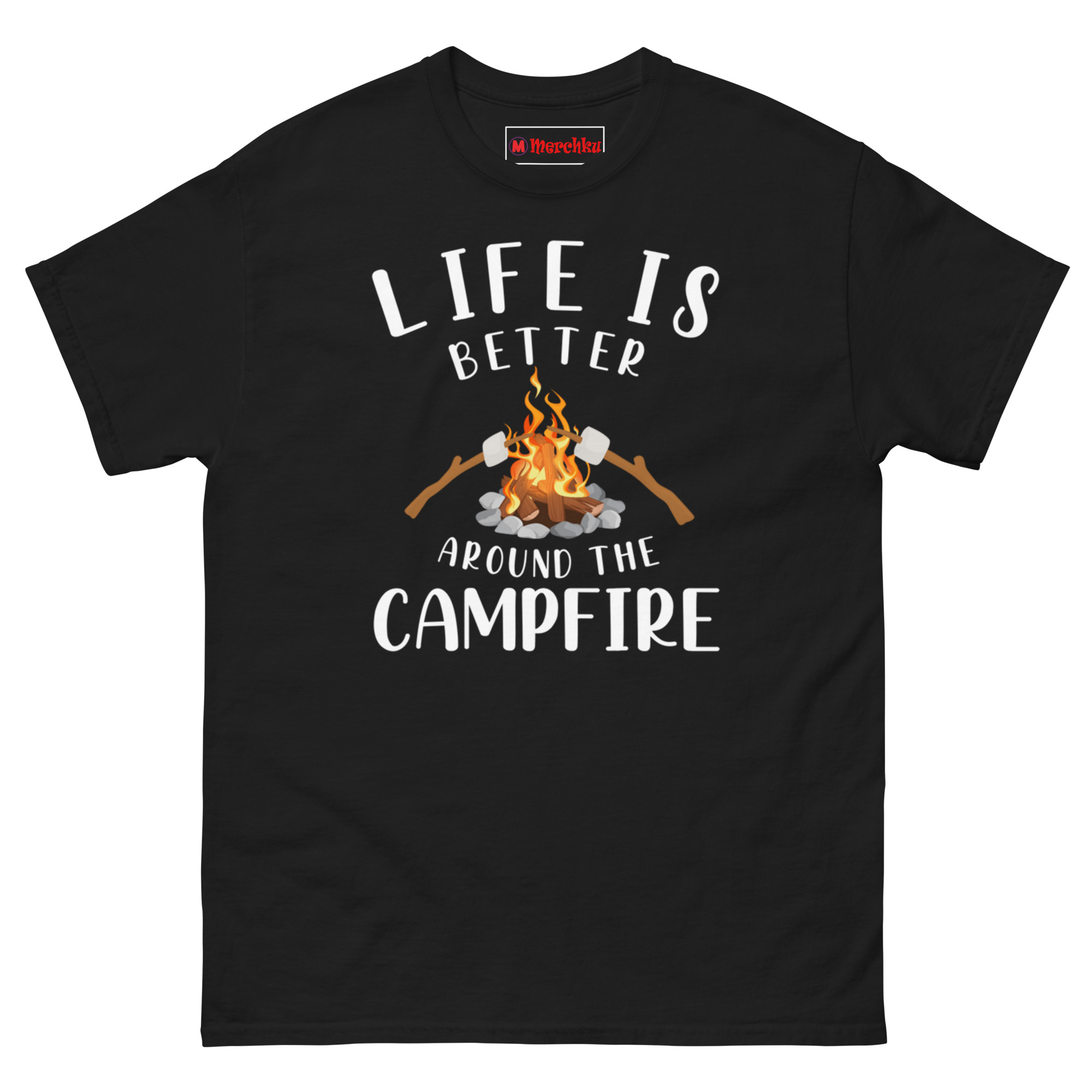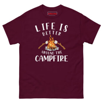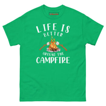 The Life Is Better Around The Campfire Shirt is a 100% cotton classic tee built for anyone who believes the best conversations happen over glowing embers and roasted sugar. What makes it unique? The Marshmallow Roasting Graphic shows two sticks exactly mid-toast, capturing that patient, happy wait for golden-brown perfection. Life is better around the campfire shirt is designed for campers, backyard fire pit owners, and anyone searching for perfect gifts For camping lovers who value comfort as much as the memory itself.