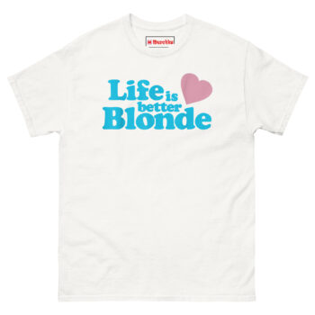 The Life Is Better Blonde Shirt is a bold, 100% cotton tee that turns hair color into a confident conversation starter. What makes it unique? The retro bubble font and pastel pink heart pop against a black background, no generic quotes here. Whether you need a gift for girlfriend, wife, best friend and mom with bright colour hair or a little boost for yourself, this shirt celebrates sunny personality without saying a single extra word.