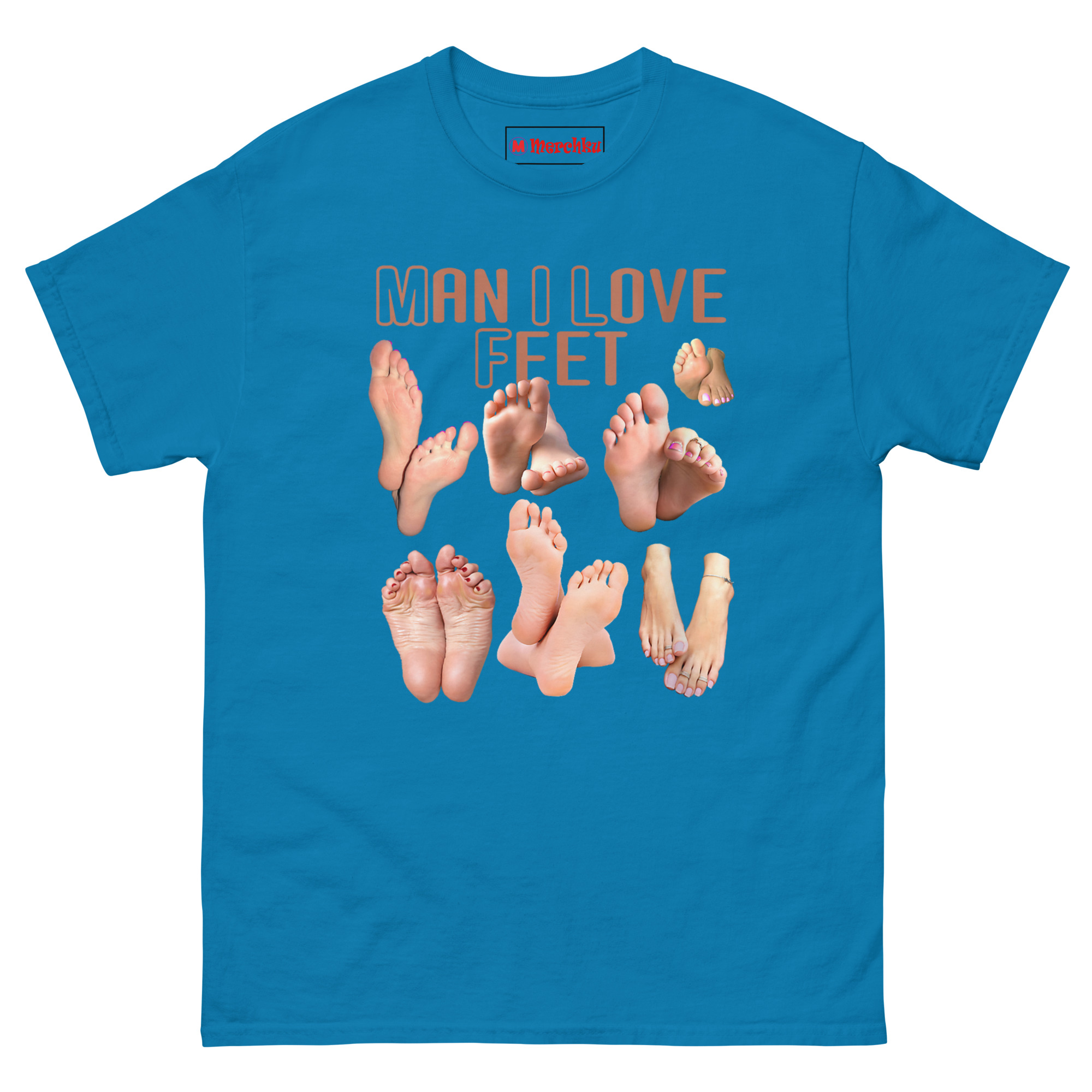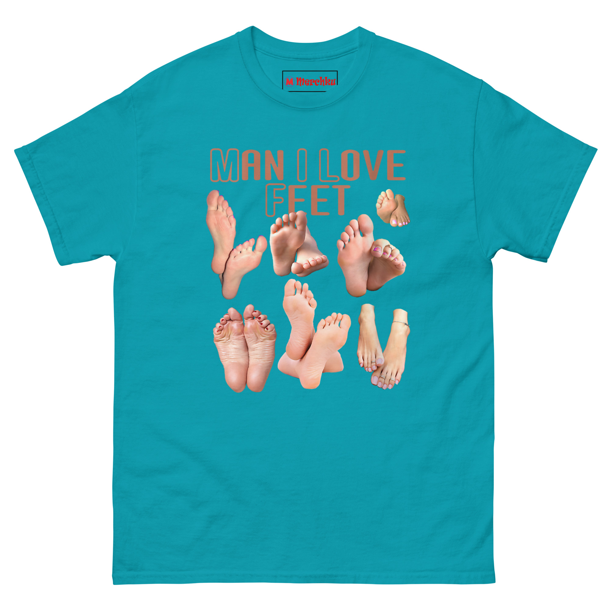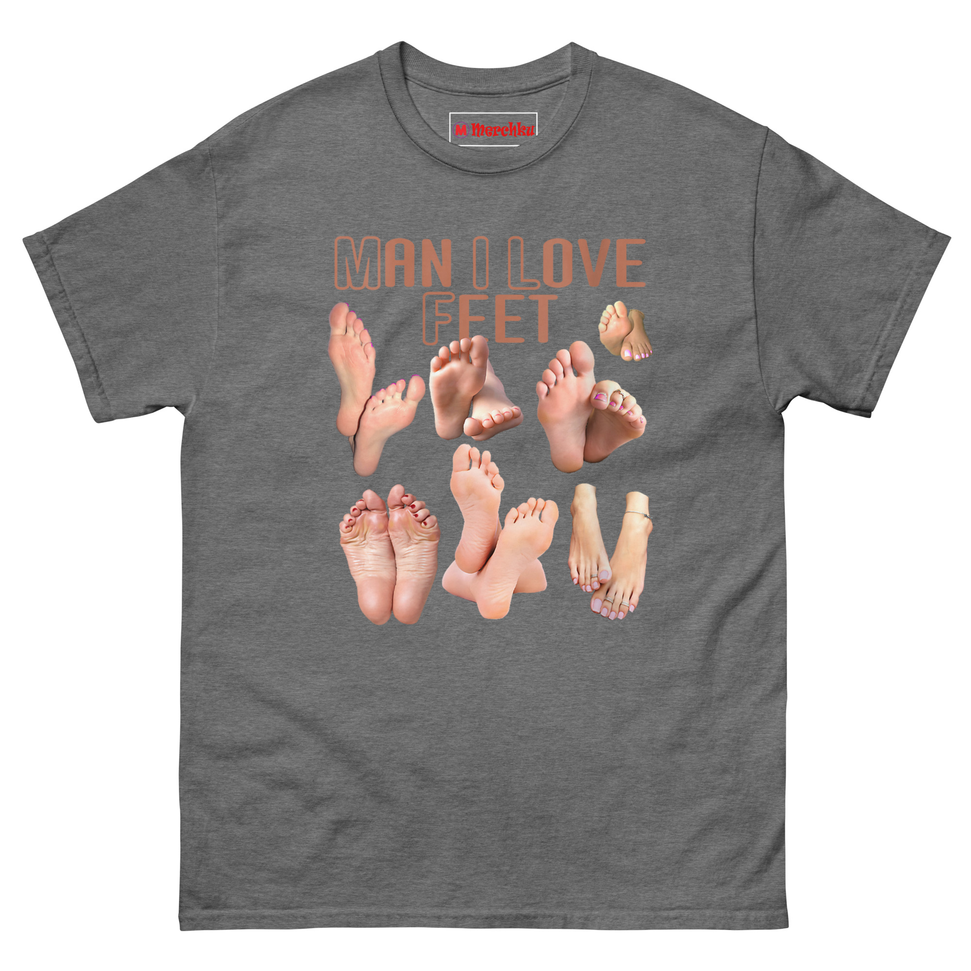 This idea started during a late-night internet rabbit hole where someone shared the classic acronym setup. We realized the potential for maximum discomfort and laughter by taking it in the most unexpected direction possible. The text at the top announces “MAN I LOVE FEET” in bold capitalized letters with skin-toned outline, leaving no doubt about the declaration. Below it, six high-resolution photographs show feet from every angle, soles, toes, arches, painted nails. The clinical presentation makes it funnier. It looks almost scientific, like a podiatry textbook gone wrong. What seemed like one thing becomes an unapologetic celebration of something people usually avoid discussing. This is edgy meme apparel for the person who lives for awkward silences followed by uncontrollable laughter.