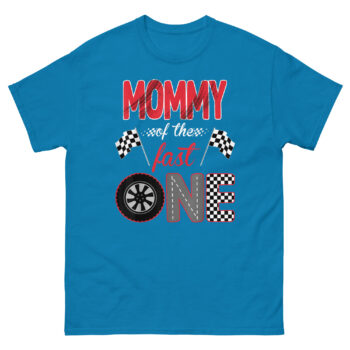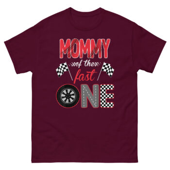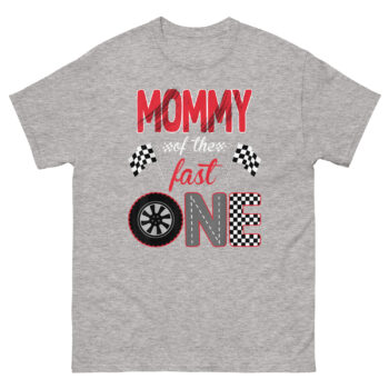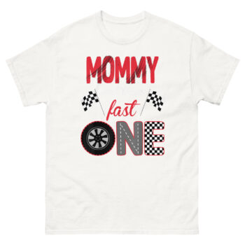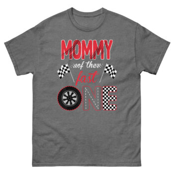 If you are looking for the perfect outfit for a first birthday party, this shirt delivers. It works great as pit crew mommy graphic tee for the birthday mom, and it also pairs well with other racing themed outfits for the whole family. Whether you are hosting a race car party or just want a fun shirt that captures the energy of parenting a busy toddler, this one fits the bill. Grab the Mommy Of The Fast One T Shirt today and show the world you are the proud mom of the fastest kid around.