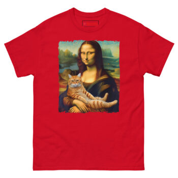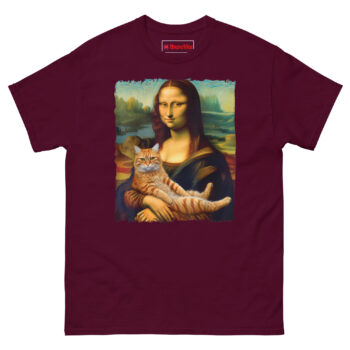 This shirt finally solves the centuries-old mystery of why Mona Lisa is smiling. The Mona Lisa Holding Cat T Shirt features Leonardo da Vinci’s iconic masterpiece, reimagined with the subject cradling a fluffy ginger tabby cat instead of her folded hands. It is designed for art lovers, cat enthusiasts, and anyone who appreciates the beautiful intersection of high culture and internet humor.
