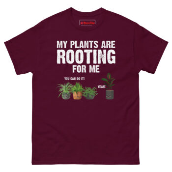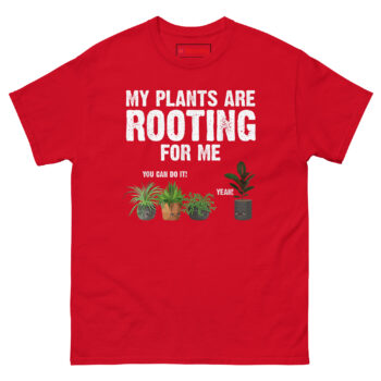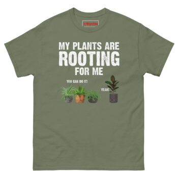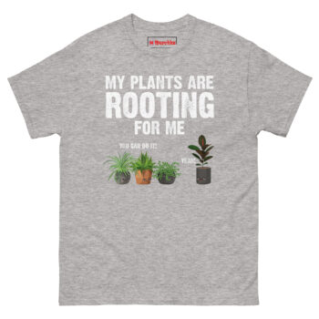 - Heartwarming Plant Pun: This My Plants Are Rooting For Me T Shirt brilliantly combines the literal roots of plants with the emotional concept of being “rooted for.” It’s clever, adorable, and guaranteed to make you smile.
