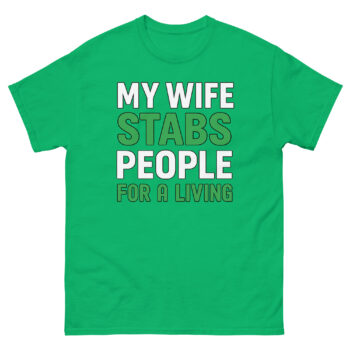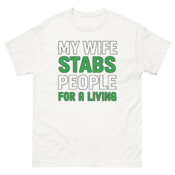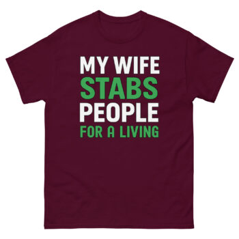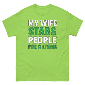 My Wife Stabs People For a Living T Shirt Specifications
