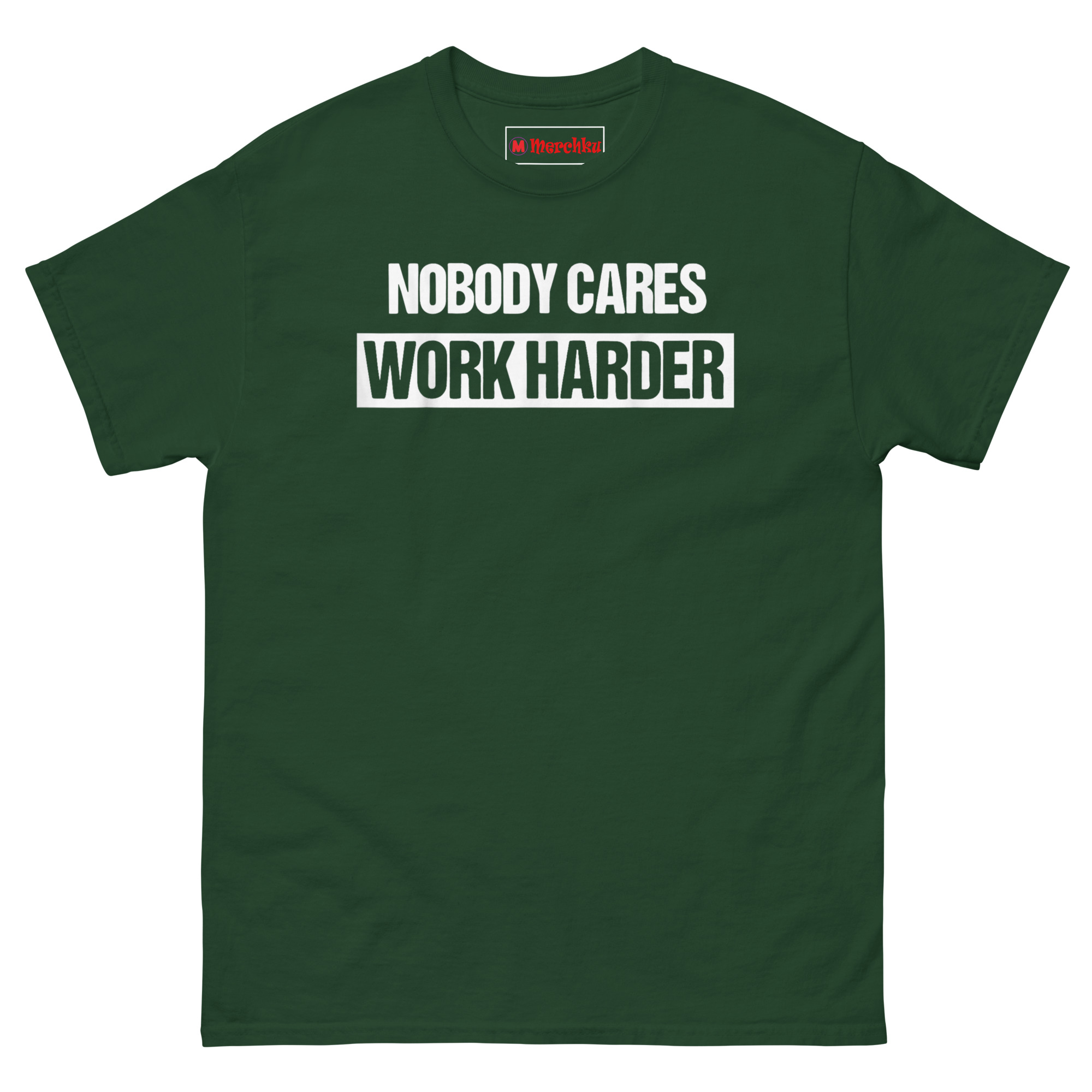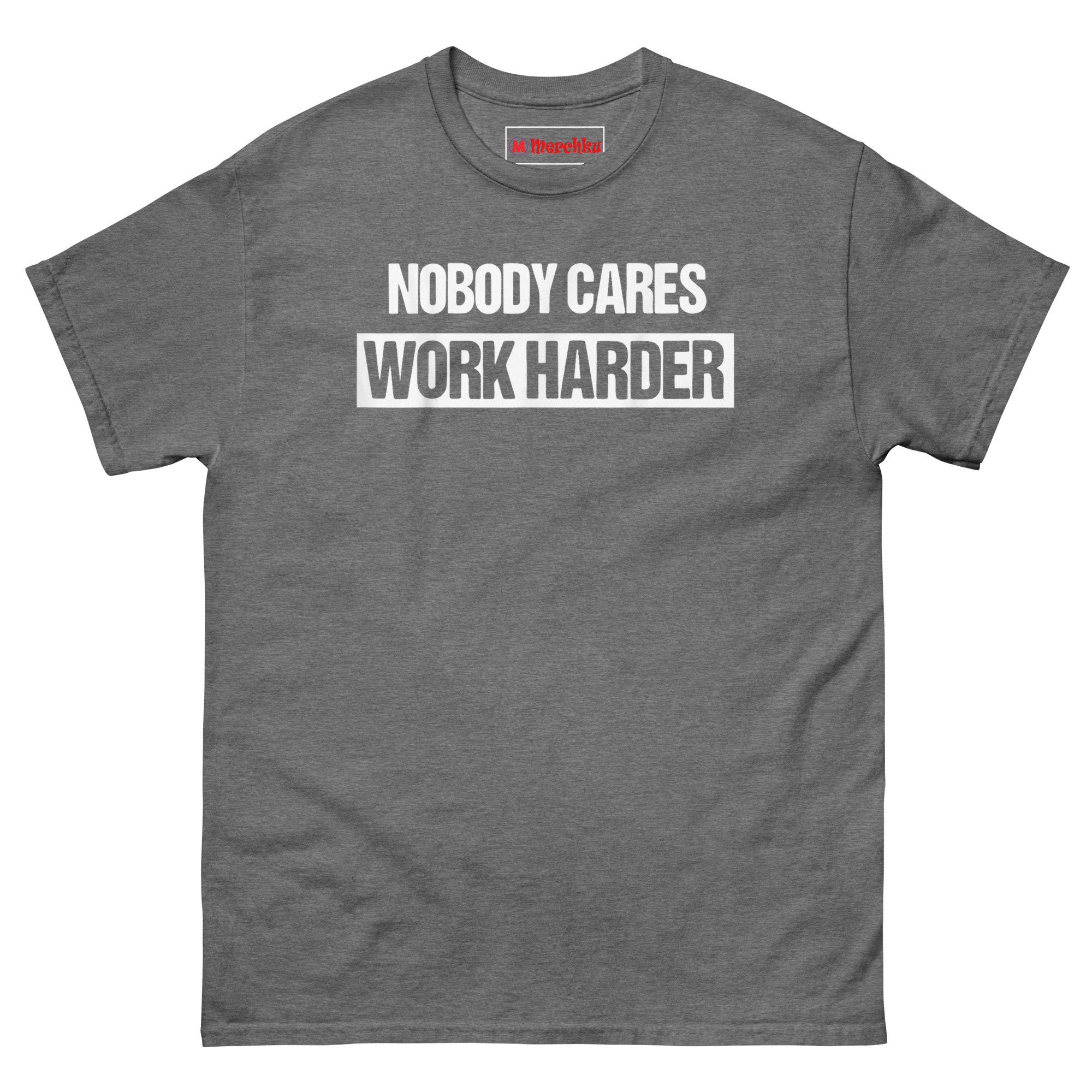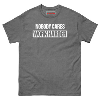 Here’s the story behind Nobody Cares Work Harder Shirt . We kept seeing motivational shirts that promised the world “Believe in Yourself,” “Stay Positive,” “You Got This.” Nice sentiments, but they don’t always help at 5 AM when the alarm goes off. So we went the other direction. This design started as a conversation with a competitive powerlifter who failed a heavy lift. His coach didn’t comfort him. He just said, “Nobody cares. Work harder.” That blunt honesty stuck. The white box around “WORK HARDER” isn’t decorative, it symbolizes the only thing you actually control. The world won’t hand you anything. Your competitors aren’t resting. This shirt is for the grit and grind crowd who find motivation in reality, not rainbows. It’s stoicism on cotton.