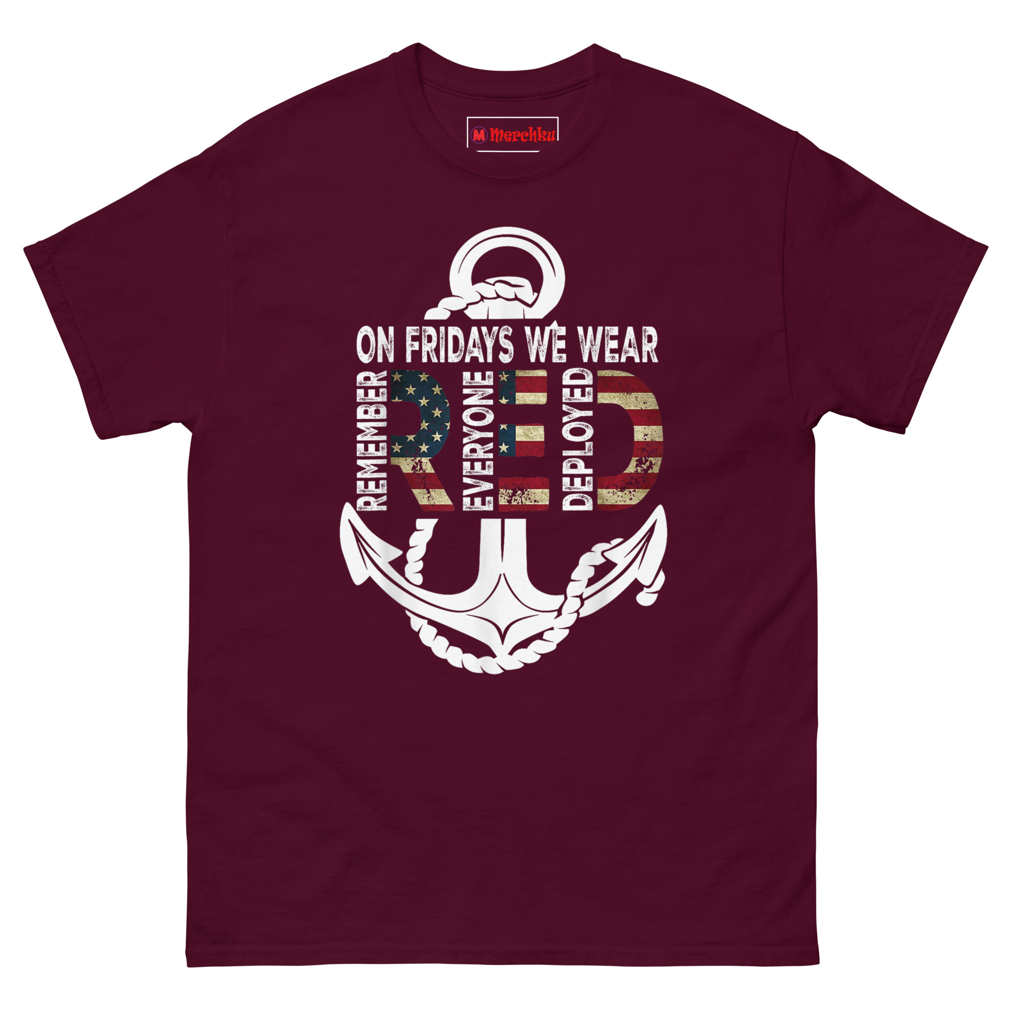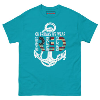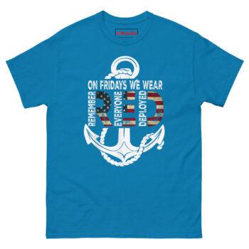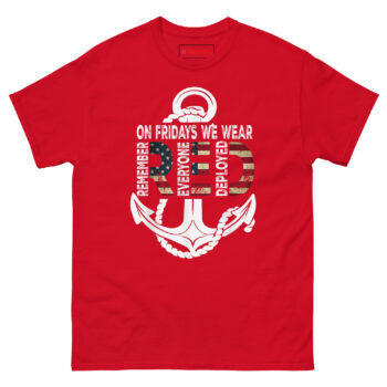 Here is a shirt that carries real meaning every single week. The On Fridays We Wear Red Shirts design honors the “RED Friday” tradition—Remember Everyone Deployed—with a rugged nautical anchor and weathered flag details. It is designed for military families, veterans, Navy moms, and anyone who wants to visibly support our troops serving far from home.