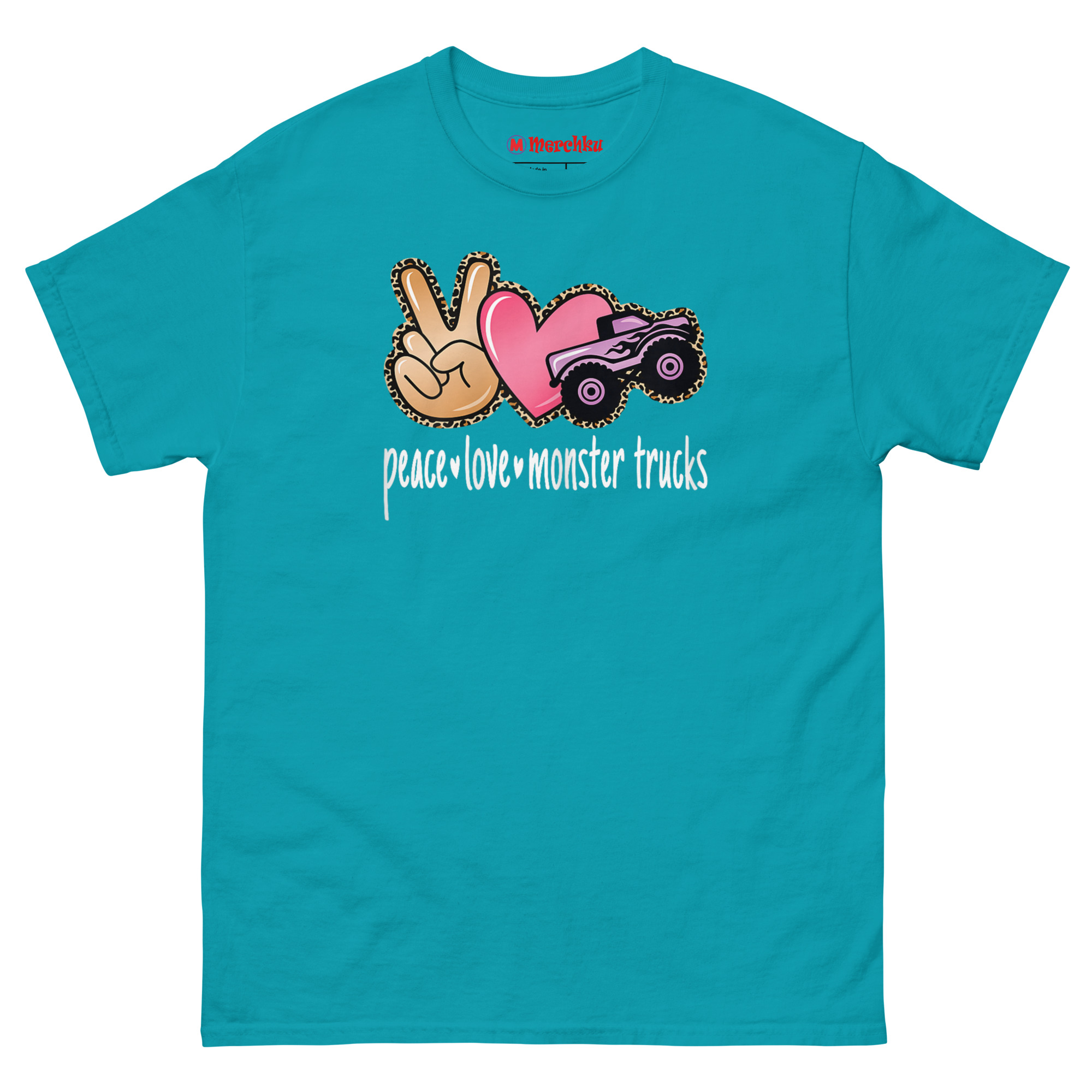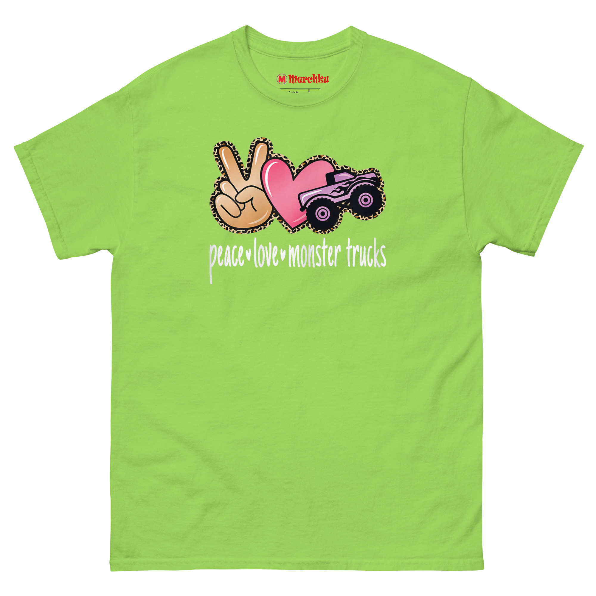 Ready to Bring the Noise? Buy Peace Love Monster Trucks T Shirt Now!