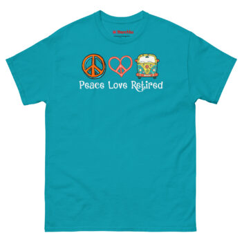The Peace Love Retired T Shirt combines classic counter-culture symbols with the ultimate milestone of freedom. It’s designed for women leaving the workforce behind and embracing the open road, new hobbies, and the peace that comes with clocking out for good.