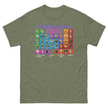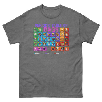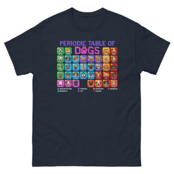 • Where Science Meets Canines: Periodic Table of Dogs T Shirt design treats dog breeds as fundamental elements of joy. It’s the ultimate dog breed infographic graphic tee for anyone who appreciates both data and drool.