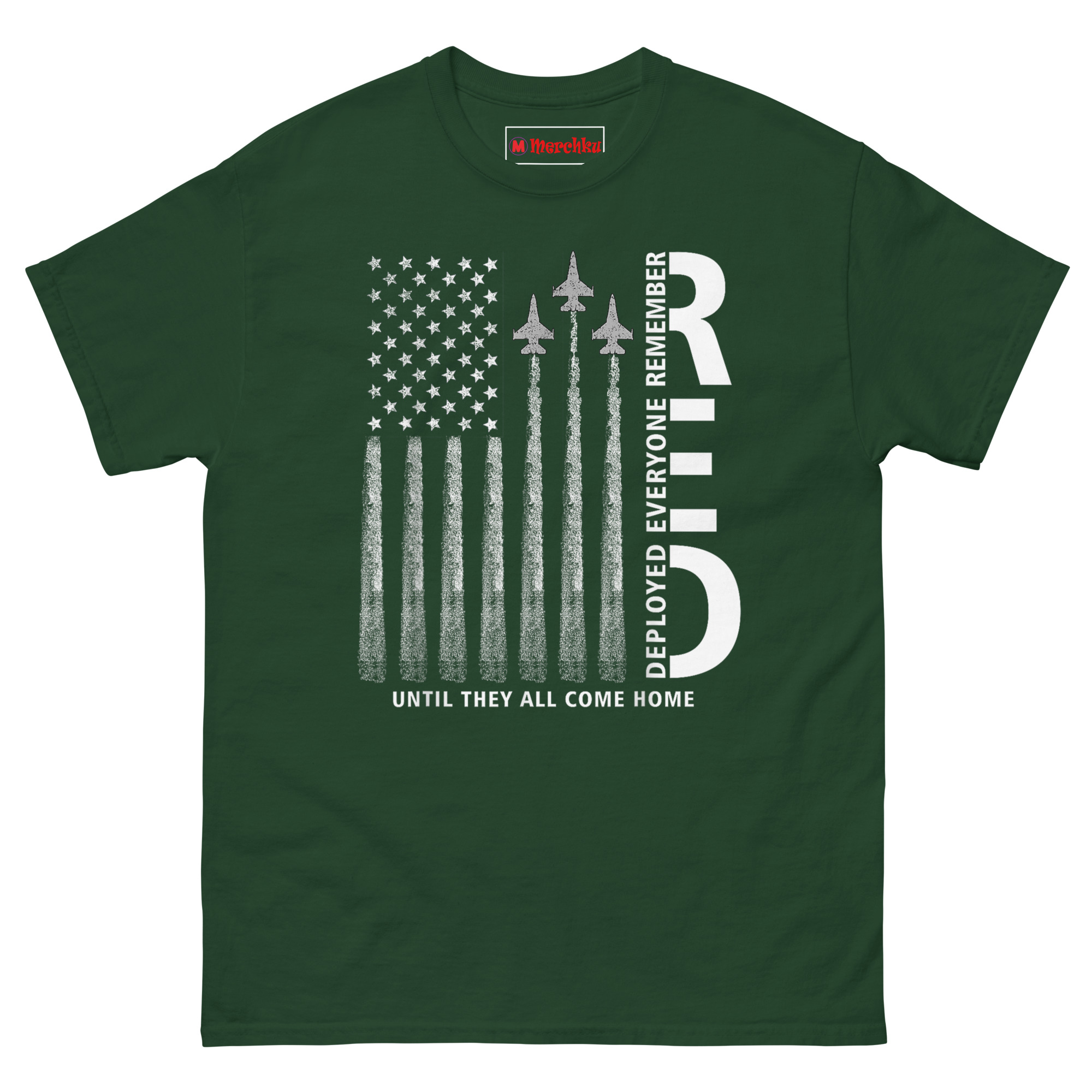- A fresh take on deployment awareness: Most patriotic gear sticks to static flags. Remembering Everyone Deployed Shirts design brings movement into the picture, honoring the airmen and pilots who serve far from home.
