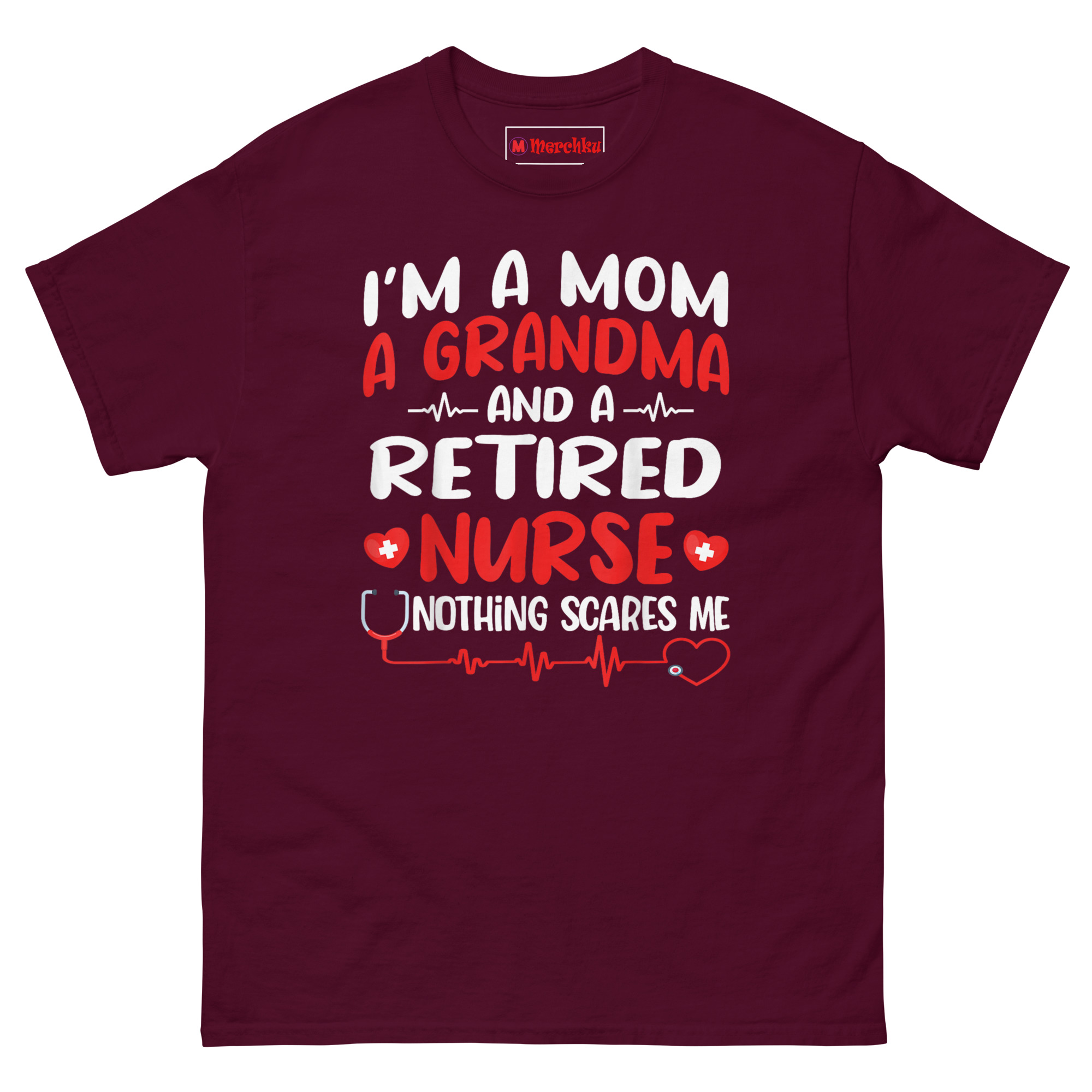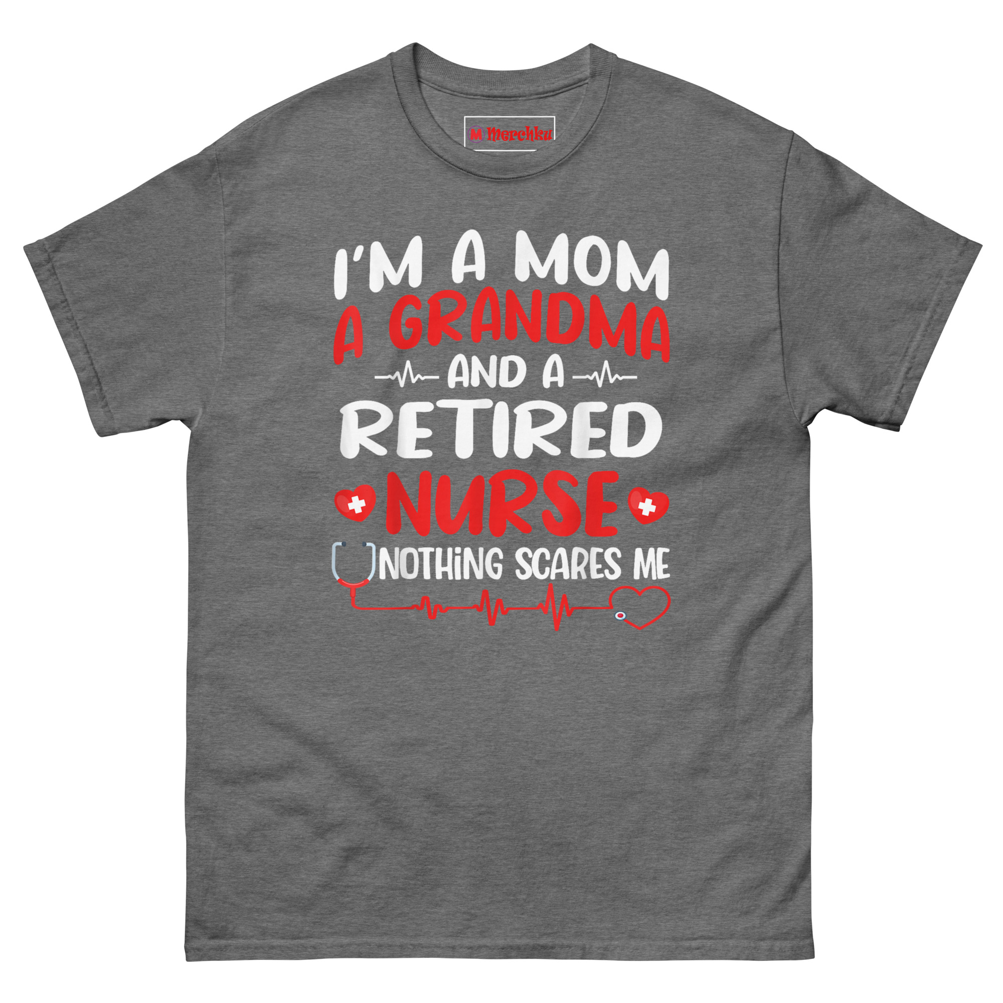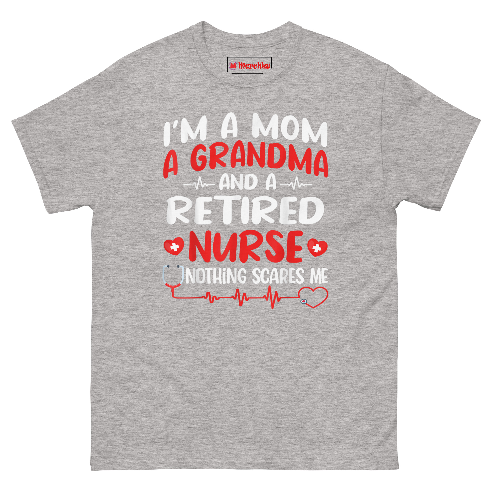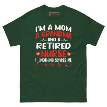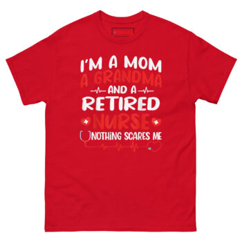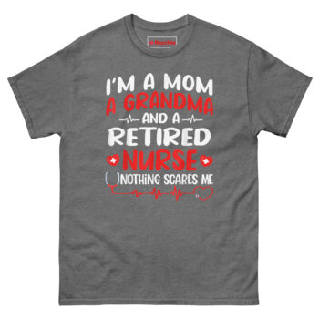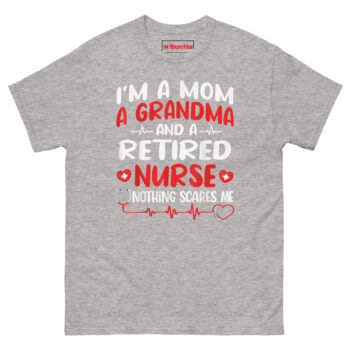 The Retired Nurse T Shirt is a bold, celebratory tee designed for the women who have spent decades caring for others, both on the clock and at home. What makes it unique is the powerful combination of roles, Mom, Grandma, and Retired Nurse, capped with the confident punchline “Nothing Scares Me,” all framed by medical hearts and an EKG line that transforms into a stethoscope. It is one of the most meaningful gifts for someone retiring from nursing, honoring a lifetime of strength, compassion, and unshakable courage.
