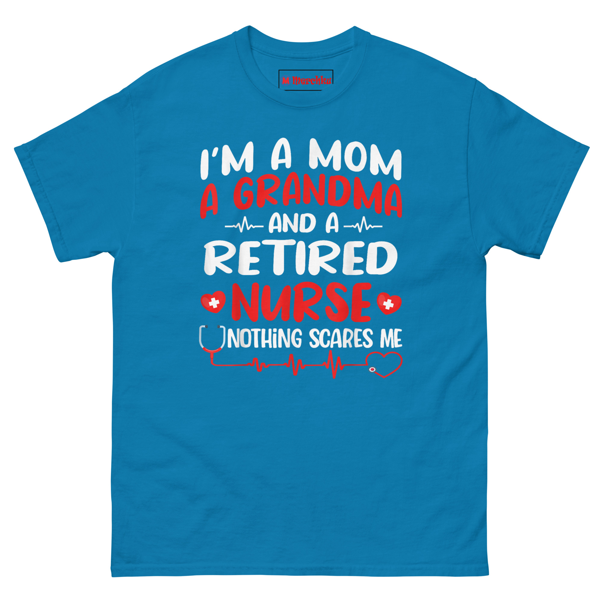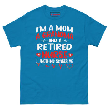 This Retired Nurse T Shirt was inspired by a conversation with a nurse retiring after forty years in the ICU. Her daughter asked if she was nervous about finally slowing down. She laughed and said, “Nervous? I have raised two kids, helped deliver dozens of babies, and spent four decades keeping people alive. Nothing scares me.” Her family knew immediately that those words belonged on a shirt.